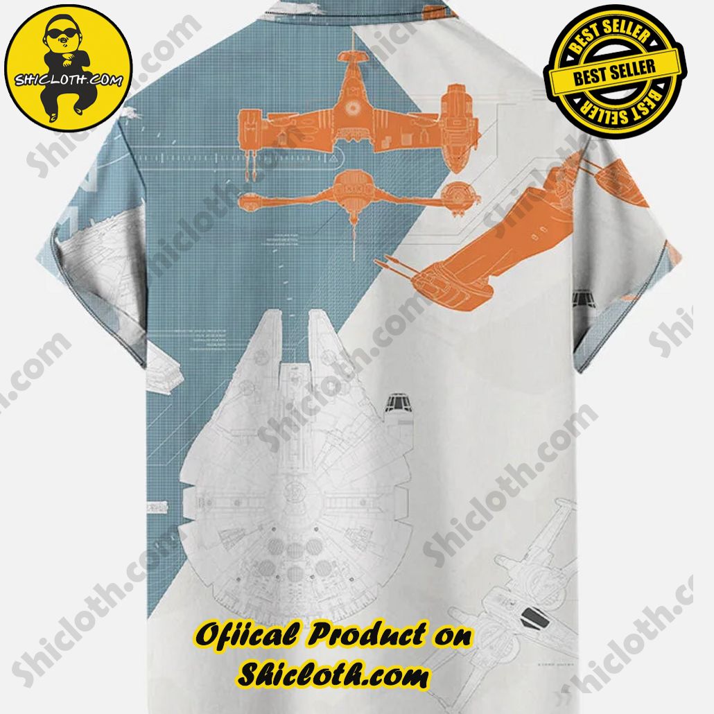 Information of Retro Draft Style Space War Aircraft Blueprint Printing Breast Pocket Short Sleeve Shirt: