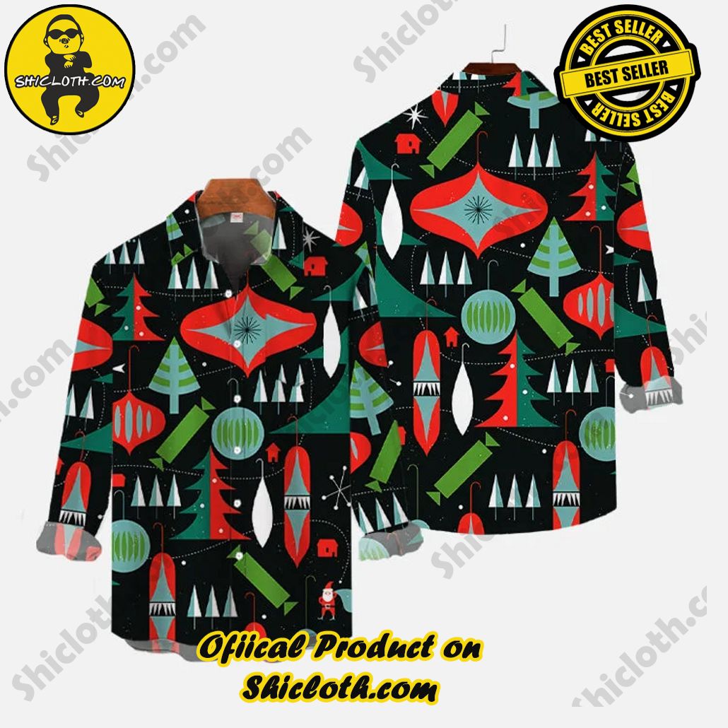 Introducing the festive and stylish Retro Geometric Style Red and Green Christmas Tree Printing Breast Pocket Long Sleeve Shirt! Crafted from high-quality materials, this vibrant shirt boasts a bold Christmas tree print in geometric shapes. The classic red and green color scheme evokes the spirit of the holidays, while the breast pocket adds a touch of sophistication. Its long sleeves and comfortable fit ensure that you’ll stay warm and cozy all season long. Made with pride in the USA and shipped worldwide, this unique shirt is the perfect way to spread Christmas cheer wherever you go. Whether you’re attending a holiday party, caroling through the streets, or simply enjoying the festivities at home, this shirt will put you in the Christmas spirit.