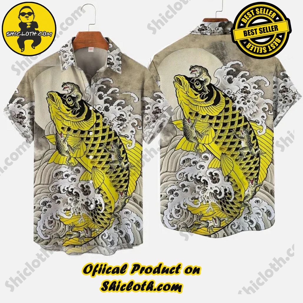 - Suitable for special occasions such as Christmas, birthday, celebration, housewarming gift. Retro Japanese Ukiyo-e Yellow Koi Fish And Waves Printing Breast Pocket Short Sleeve Shirt