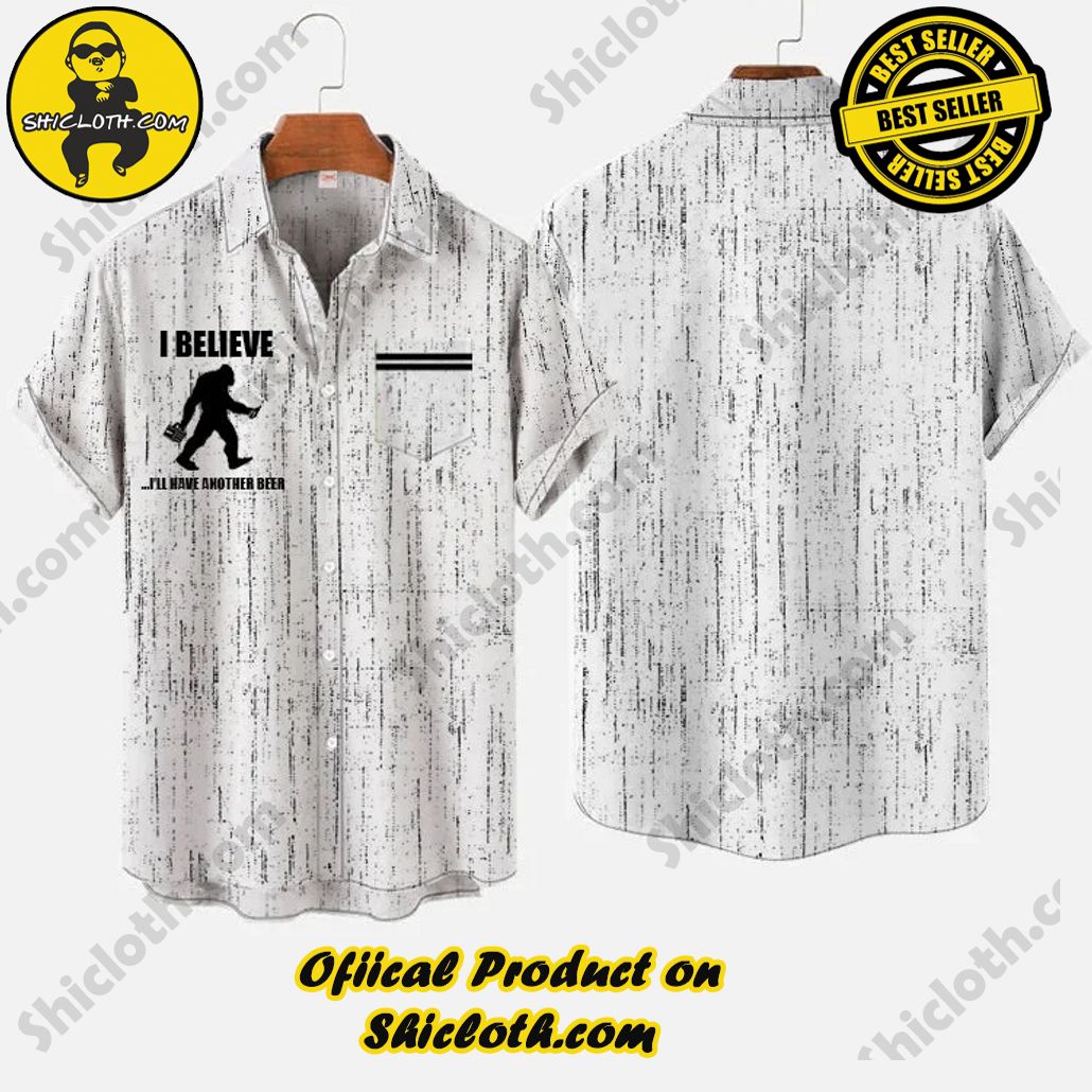 Retro Minimalist Giant Ape And Beer Silhouette Printing Breast Pocket Short Sleeve Shirt
