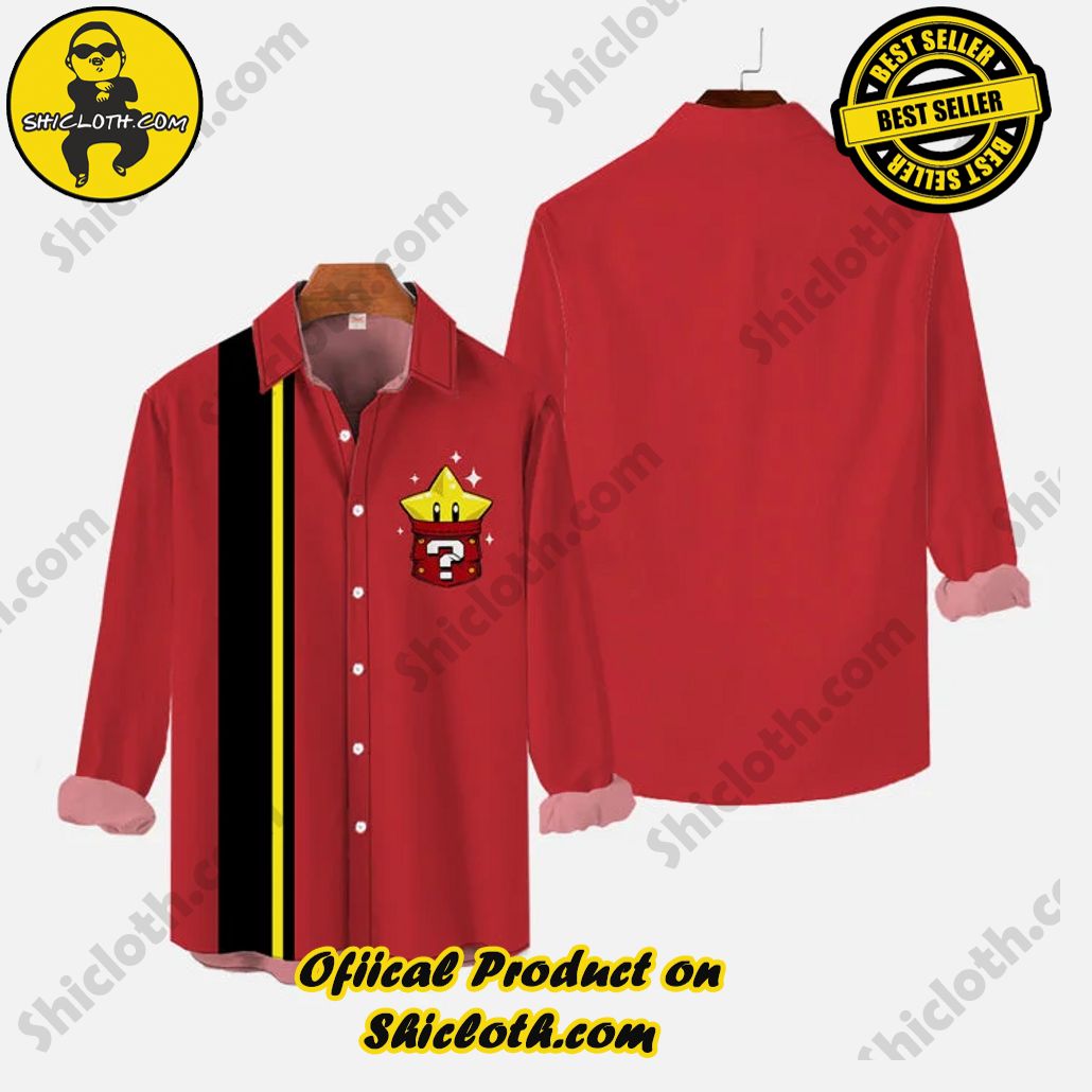 Retro Striped Black And Red Stitching Cartoon Star Wisdom Box Printing Long Sleeve Shirt