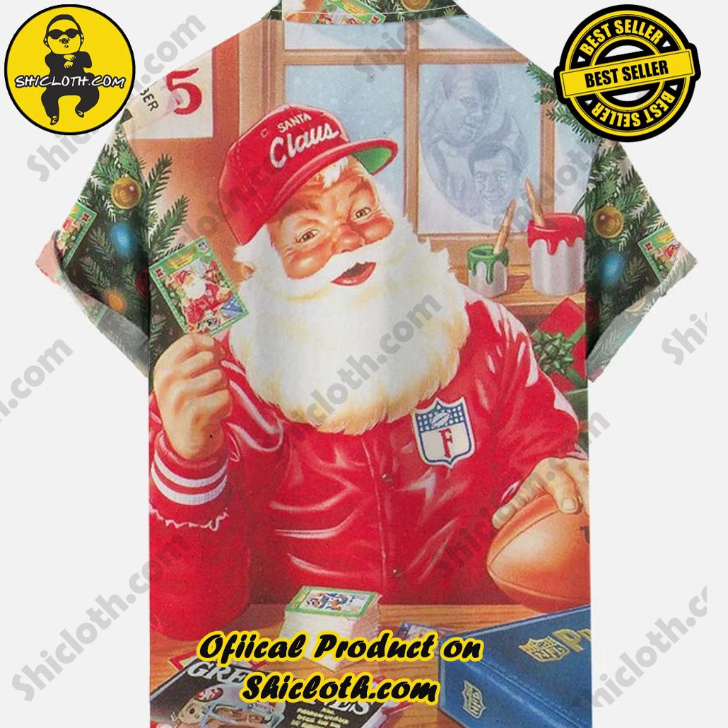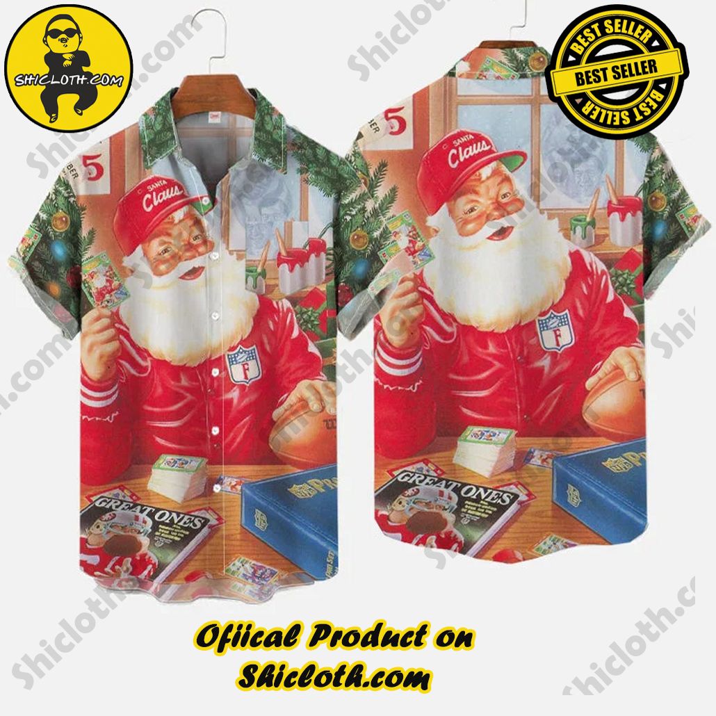 Retro Traditional Christmas Rugby Team Santa Printing Breast Pocket Short Sleeve Shirt