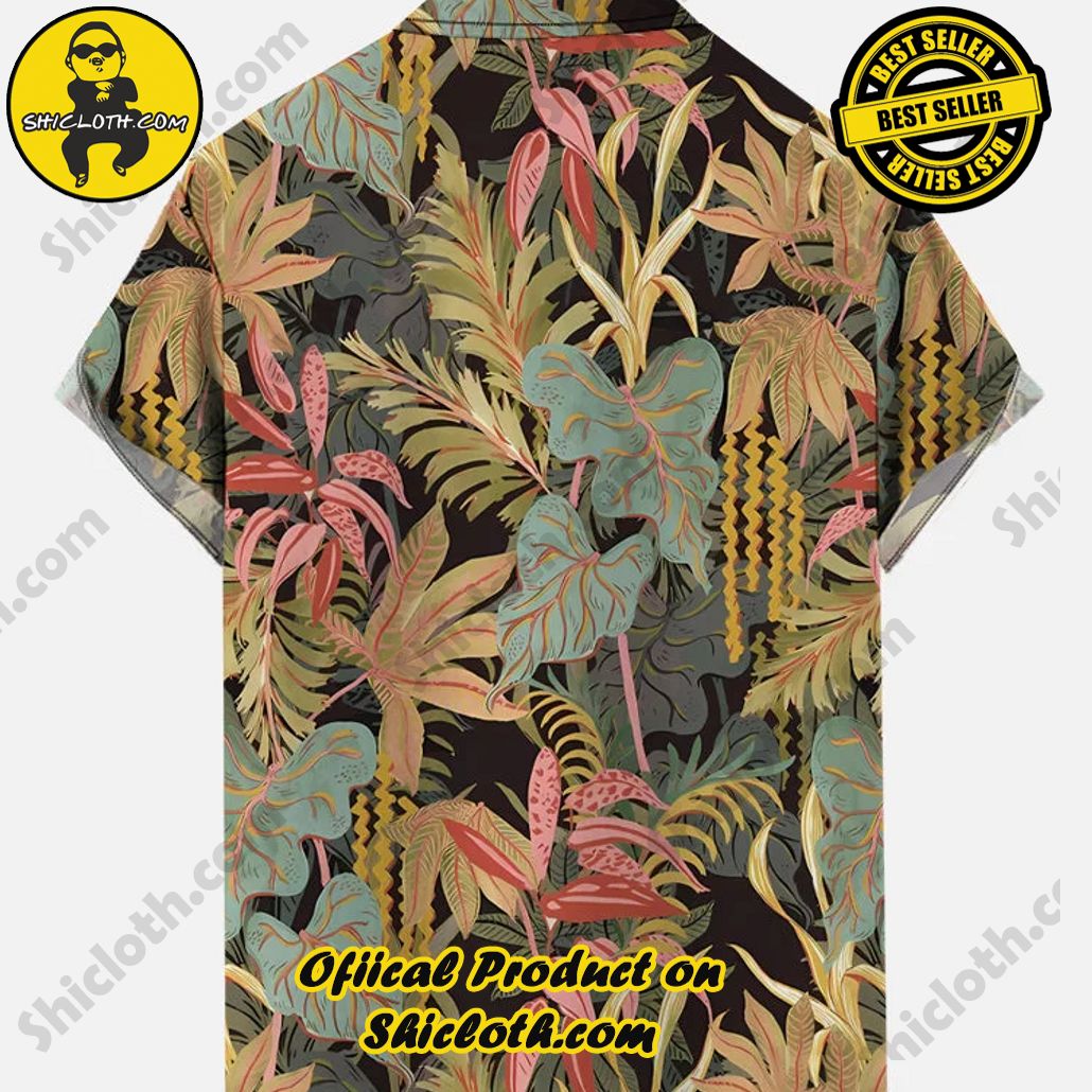 Retro Tropical Rainforest Plant Leaves Printing Hawaiian Short Sleeve Shirt