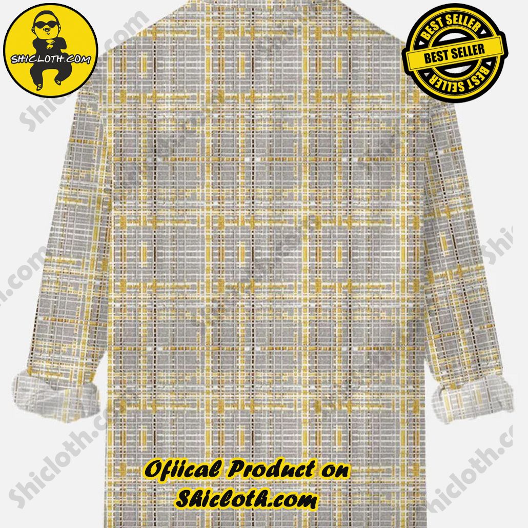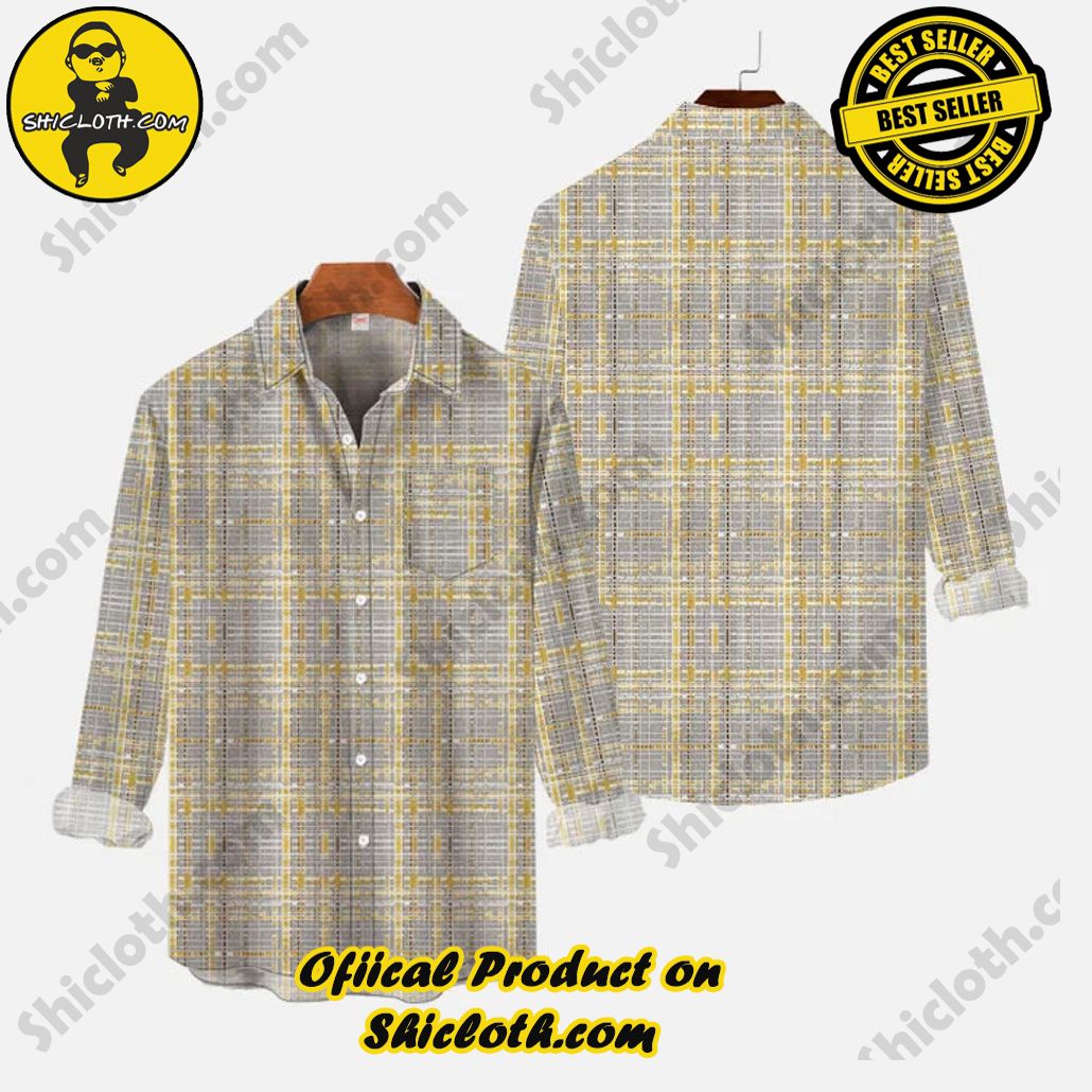Overview of the Retro Yellow-Gray Plaid Pattern Printing Breast Pocket Long Sleeve Shirt: