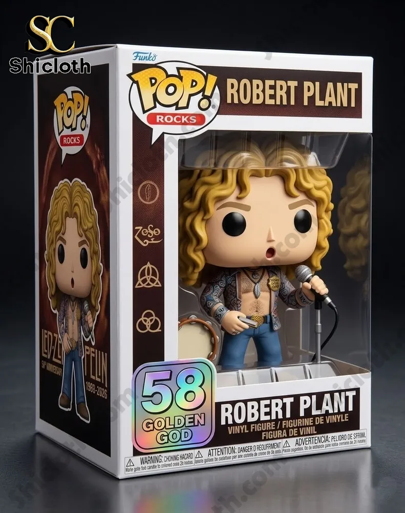 Celebrate a legendary era of rock history with the Robert Plant Led Zeppelin 58 Years Golden God Funko Pop, a must-have collectible for fans seeking to honor the band’s legacy from 1968 to 2026. This vinyl figure captures the essence of the “Golden God” with incredible precision, featuring his iconic voluminous blonde curly hair and an open-chest patterned shirt that radiates 1970s stage presence. Whether you are a hardcore Led Zeppelin enthusiast or a dedicated Funko collector, this piece offers a high-quality, tactile connection to the music that defined a generation.