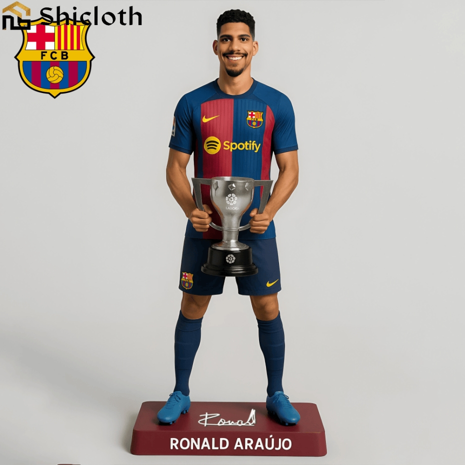 Celebrate Ronald Araújo’s pivotal role in Barcelona’s triumphant La Liga victory in 2025 with this exquisitely crafted commemorative ornament! This is not just a decoration; it’s a testament to Araújo’s unwavering dedication, incredible skill, and integral contribution to Barça’s championship season. Meticulously designed, this ornament captures the essence of his iconic presence on the field, immortalizing the glory of the 2025 La Liga win.