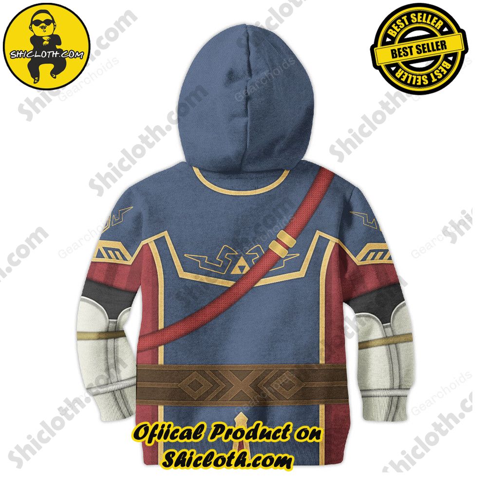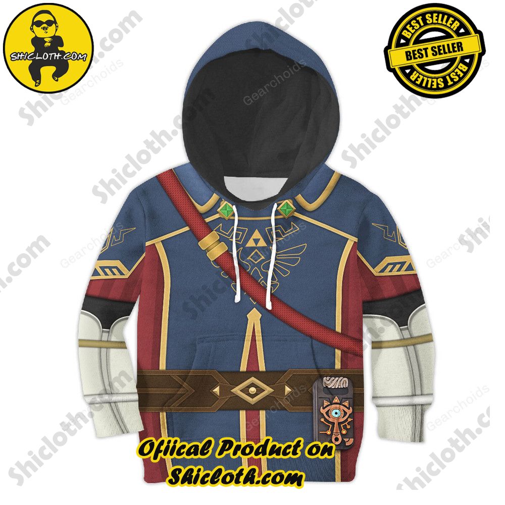 Introducing our Royal Guard Uniform – Breath of the Wild costume kid tops! If your little one is a fan of the iconic video game, then this hoodie sweatshirt or t-shirt is the perfect addition to their wardrobe. Made with the utmost attention to detail, this costume top replicates the design worn by the Royal Guards in the popular game, Breath of the Wild.