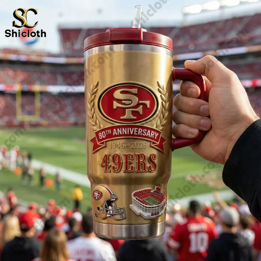 Product Information: San Francisco 49ers 80th Anniversary 1966-2026 Yeti Stainless Steel Tumbler With Hand