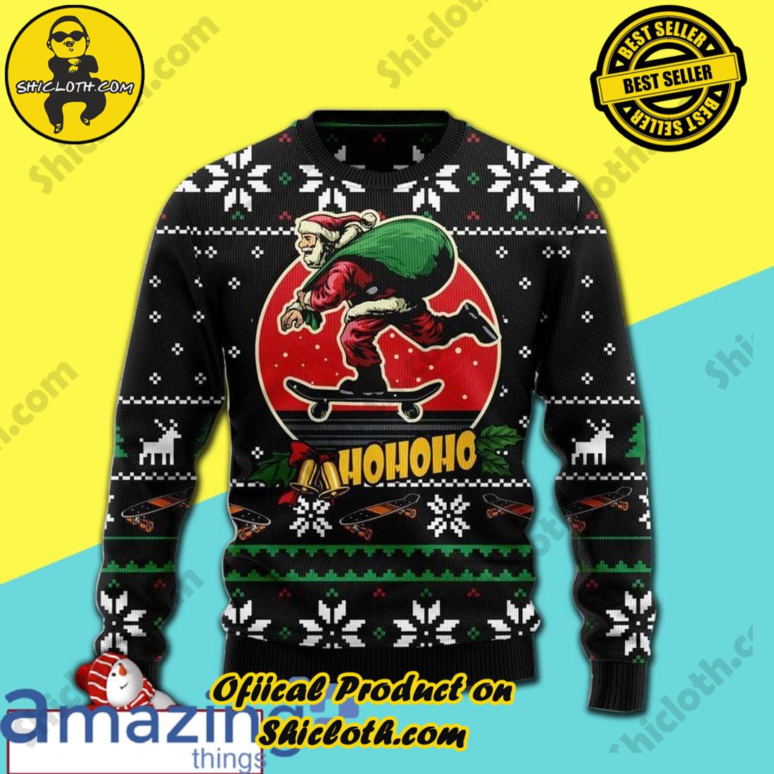 Santa Claus Skateboard Christmas Knitting Pattern Christmas Ugly Sweater