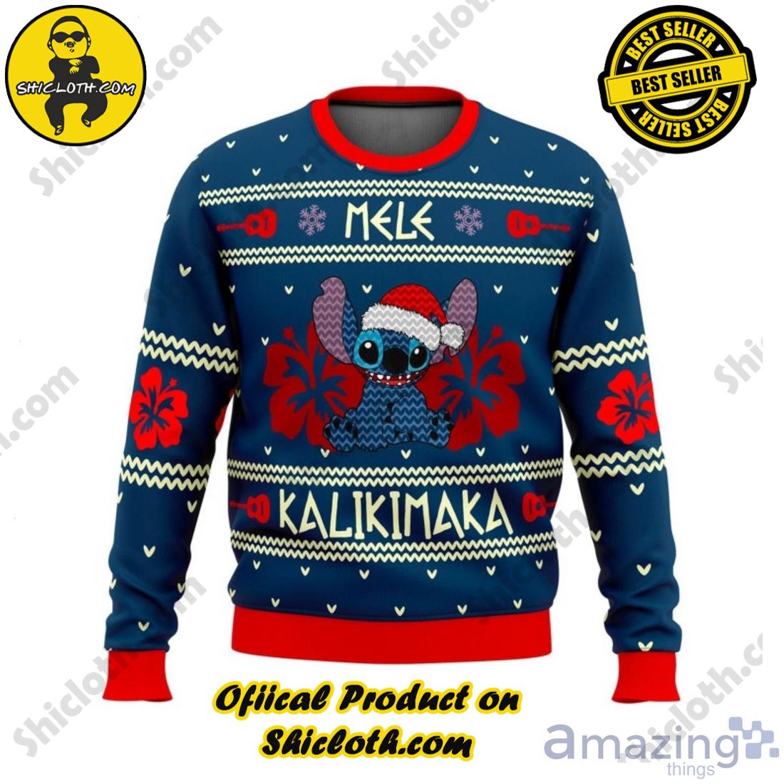 Santa Stitch Mele Kalikimaka Ugly Christmas SweaterLilo And Stitch Lovers Ugly Sweater