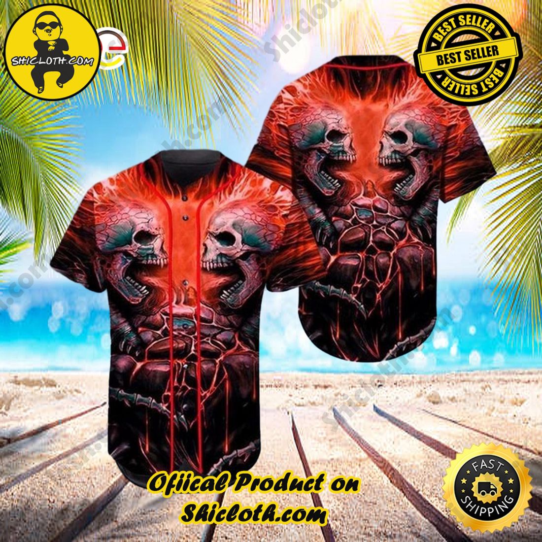 From the grand stadiums to the cozy neighborhood ballparks, the sight of fans proudly sporting their team’s colors is a testament to the deep connection between baseball and its enthusiasts. Whether you’re a seasoned baseball aficionado or a newcomer to the game, an MLB jersey is a timeless symbol of unity and camaraderie.Skull Angry Red Baseball Jersey Shirt Each jersey tells a unique story, emblazoned with the team’s emblem, colors, and player numbers. From the storied franchises with decades of championship victories to the up-and-coming teams ready to make their mark, every MLB jersey carries a legacy.