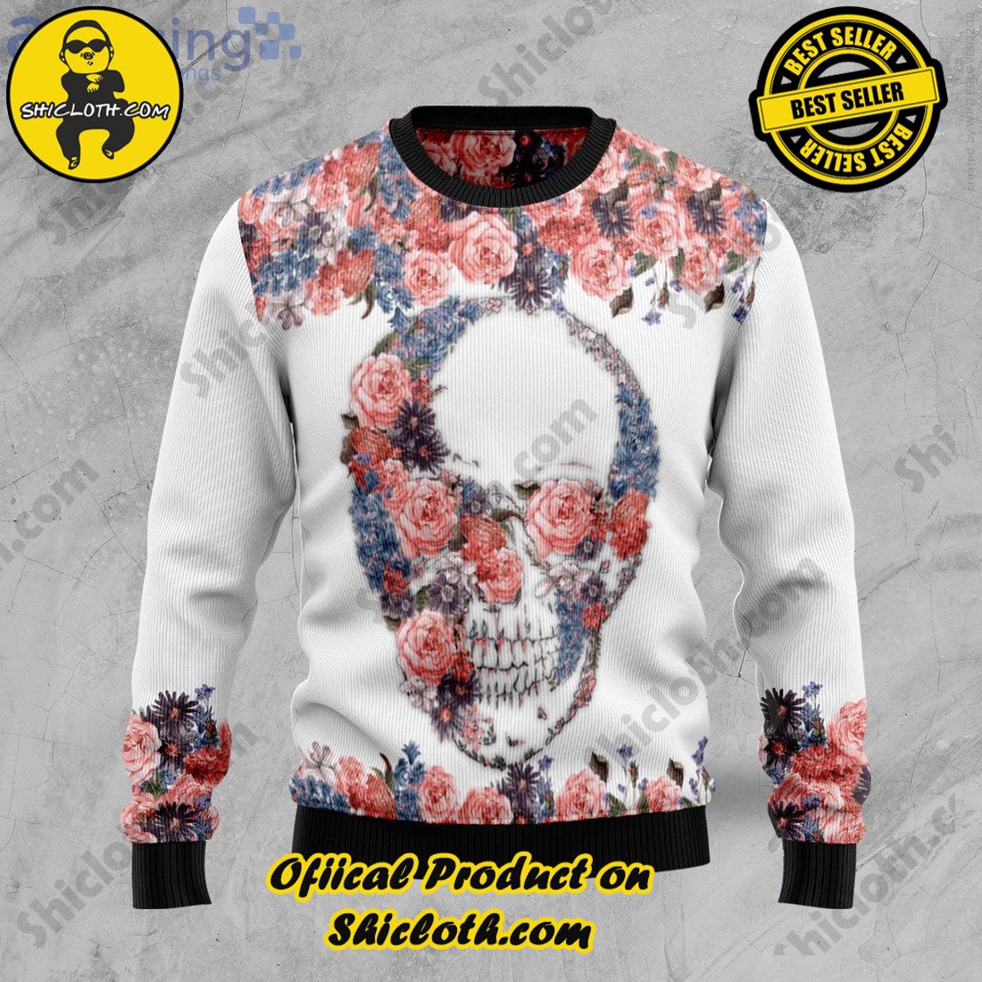 Skull Flowers Pink Flower Ugly Christmas Sweater