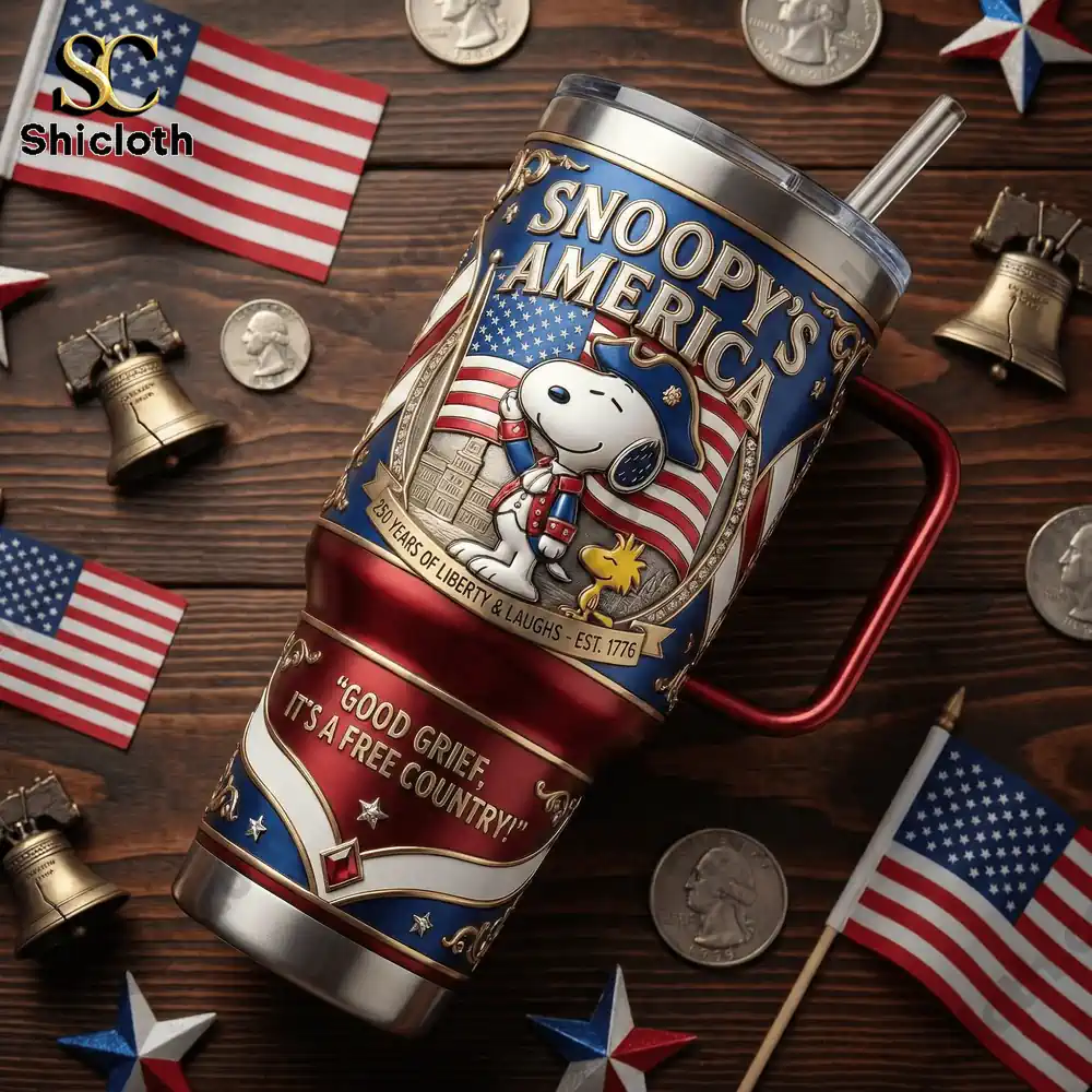 Celebrate the upcoming 250th anniversary of the United States with the Snoopy’s America 40oz Tumbler. This limited-edition drinkware features a patriotic Peanuts design, combining a durable stainless steel construction with vibrant, embossed-style graphics. It is designed for long-lasting temperature retention and high-volume hydration, making it a perfect companion for fans and collectors alike.