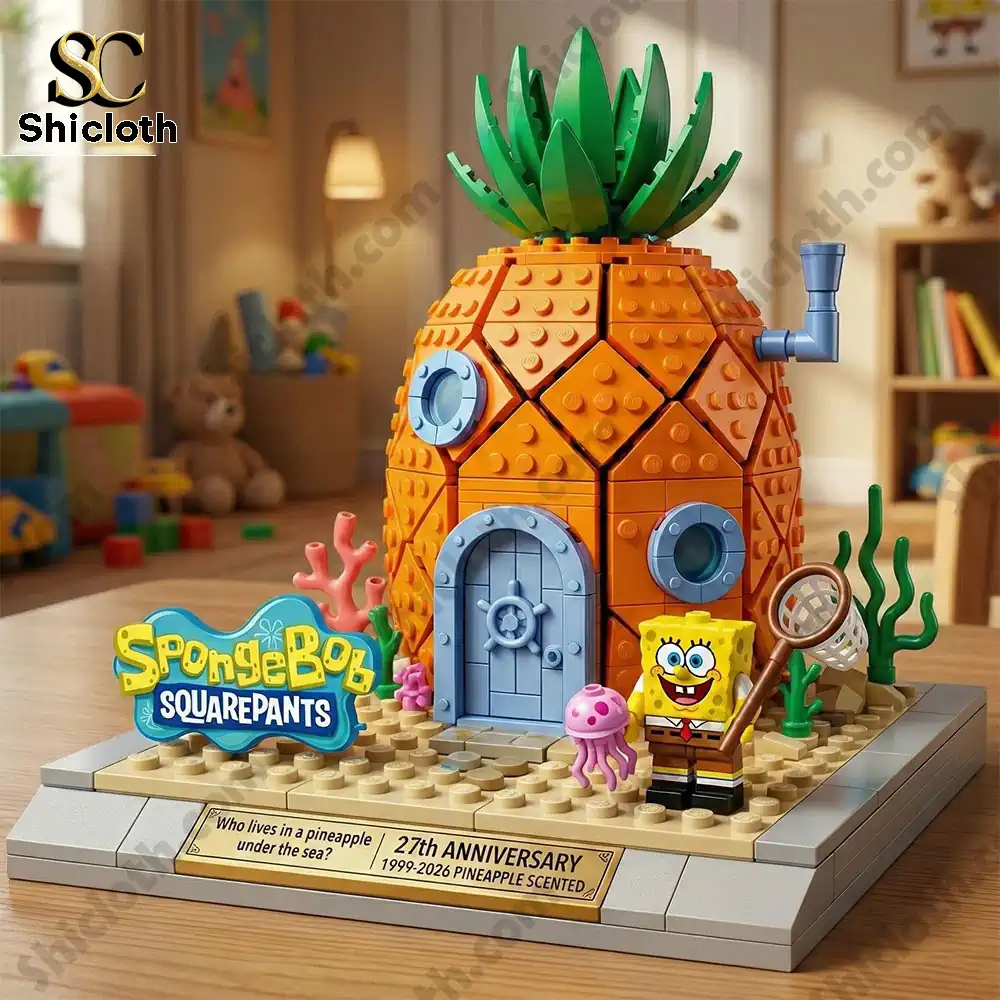 The Spongebob 27th Anniversary Pineapple House Brick Block Set 2026 is a premium commemorative piece that blends nostalgic charm with modern craftsmanship. This unique set features a high-resolution, 3D digital print of the iconic pineapple home, complete with a detailed Spongebob figure holding a jellyfishing net. Designed as a high-end decorative keepsake, the product is crafted from 1.5cm thick premium acrylic, ensuring a sturdy feel and a crystal-clear finish that resists yellowing over time.
