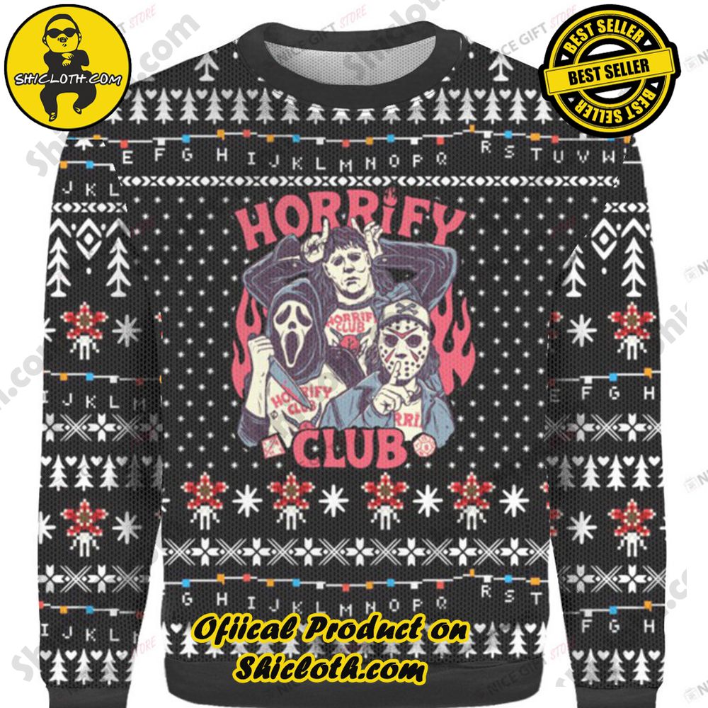 Introducing the ultimate Stranger Things Horrify Club Christmas Ugly Sweater! Get ready to flaunt your love for the iconic show and spread some holiday cheer with this fun and spooky sweater. Made with the finest quality materials, our sweater guarantees both durability and comfort. With its unique design showcasing the nostalgia of Stranger Things and the festive spirit of Christmas, it is bound to be a conversation starter at any holiday gathering or ugly sweater party.