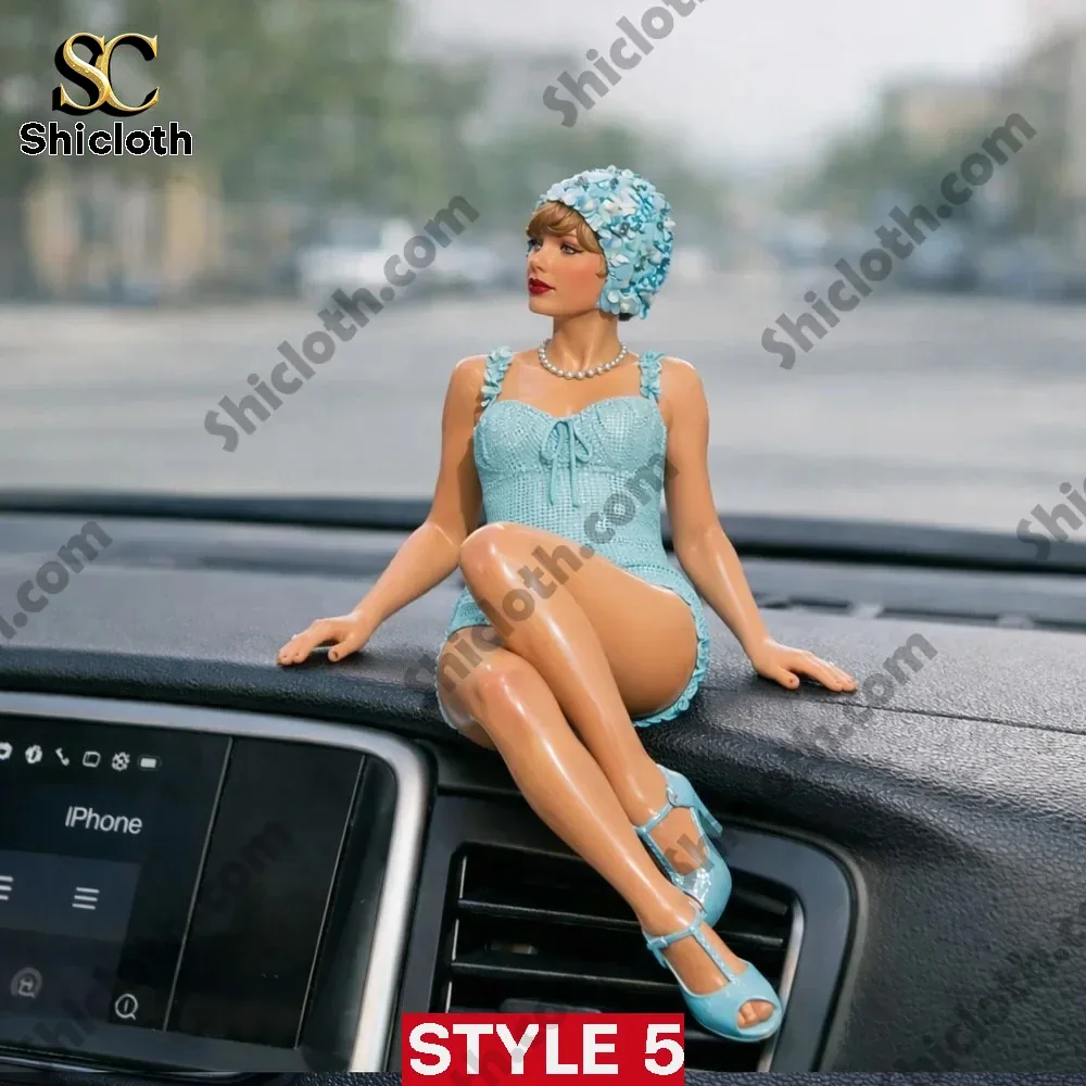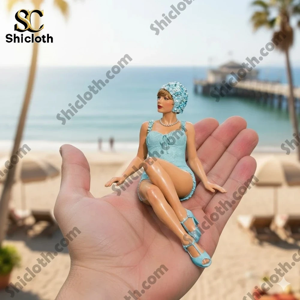 For fans of the more recent tours, Style 3 offers a variation of the pink bodysuit designed specifically as a versatile car dashboard ornament, looking perfect next to a digital display. Style 4 features Taylor in a dazzling silver and blue tasseled outfit with metallic silver boots, designed as a “shelf sitter” with legs that drape realistically over the edge of a surface. Every figure is crafted using dye-sublimation printing to ensure that the small textures, like the micro-fine glitter patterns and the contoured shadows on the microphone, are sharp and professional.