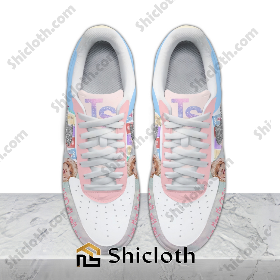 Step into your own “Love Story” with the Taylor Swift Love Made Me Crazy Air Force Sneakers! These aren’t just shoes, they’re a statement. Inspired by Taylor’s iconic eras and lyrical genius, these custom Air Force 1s capture the rollercoaster of emotions that love can bring. Featuring subtle nods to her albums – think delicate embroidery, hidden lyrics printed on the insole, and a color palette that screams Swiftie – these sneakers are a wearable tribute to the Queen of Pop. And the best part? We’re offering these at the **cheapest price you’ll find anywhere**! We believe every Swiftie deserves to rock these kicks. Plus, the more you buy, the bigger the discount! Grab a pair for you and your bestie, or collect them all for ultimate Swiftie bragging rights. Not completely in love? No worries! Our easy return policy ensures you can shop with confidence. So, what are you waiting for? Embrace the madness and show your love for Taylor with these limited-edition sneakers!