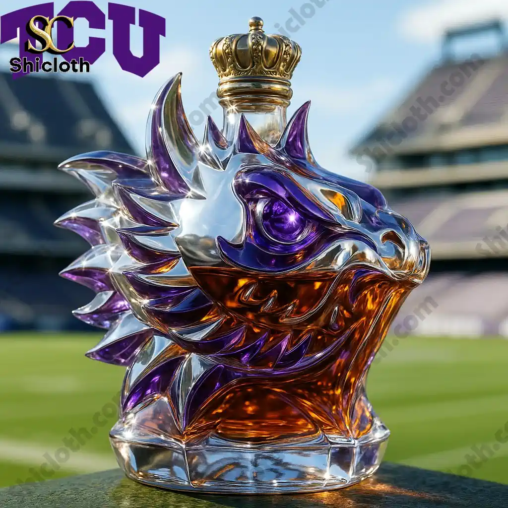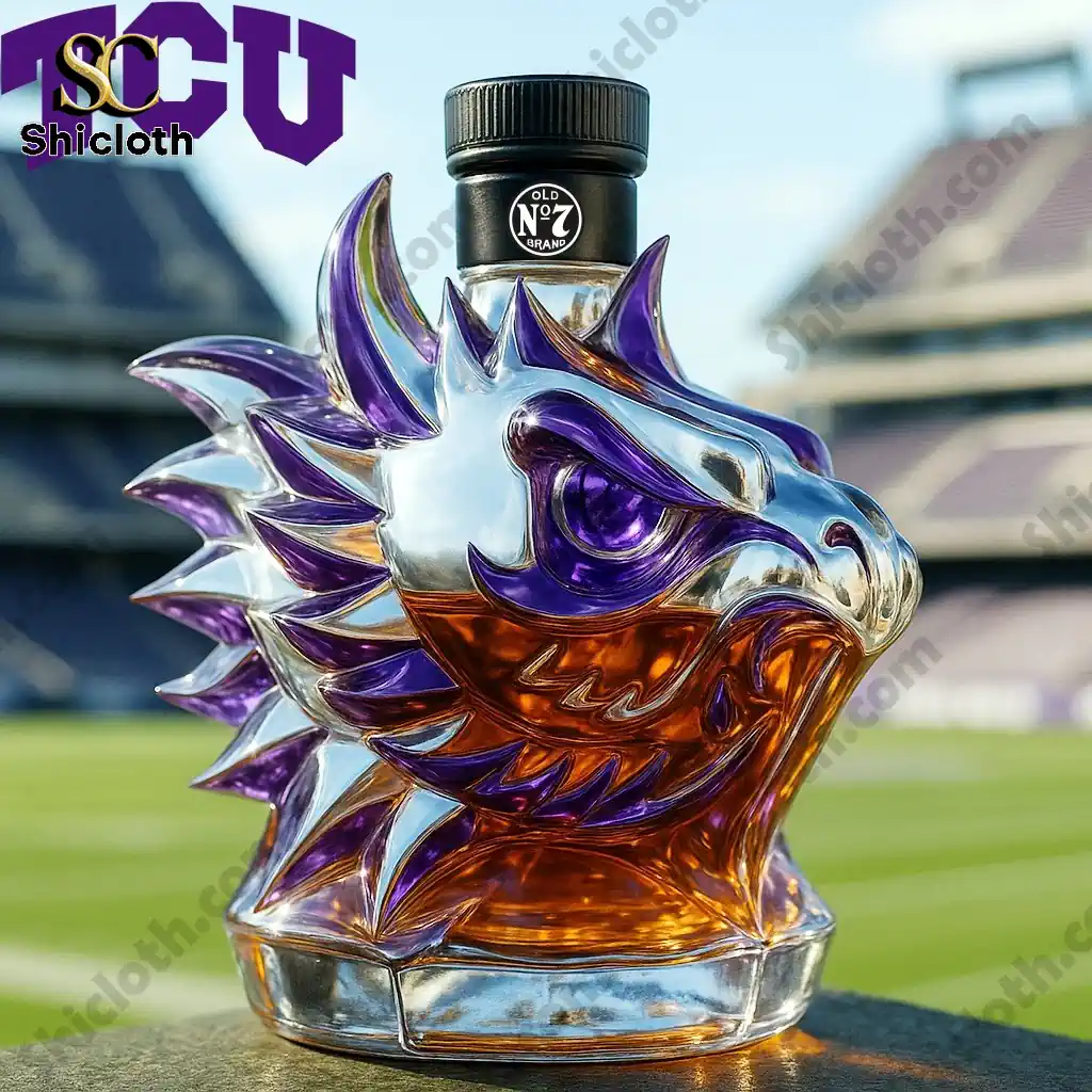 The Texas Christian University NCAA Horned Frogs Whiskey Bottle is the ultimate game-day centerpiece for fans who want to toast to victory in style. This custom-shaped decanter brings the fierce TCU mascot to life with a stunning metallic silver and deep purple finish that mirrors the team’s iconic colors. Whether you are hosting a tailgate or looking for a standout piece for your home bar, this high-quality glass bottle is designed to be a conversation starter. It is more than just a container; it is a collectible item that celebrates Horned Frogs pride through premium craftsmanship and bold, energetic design.