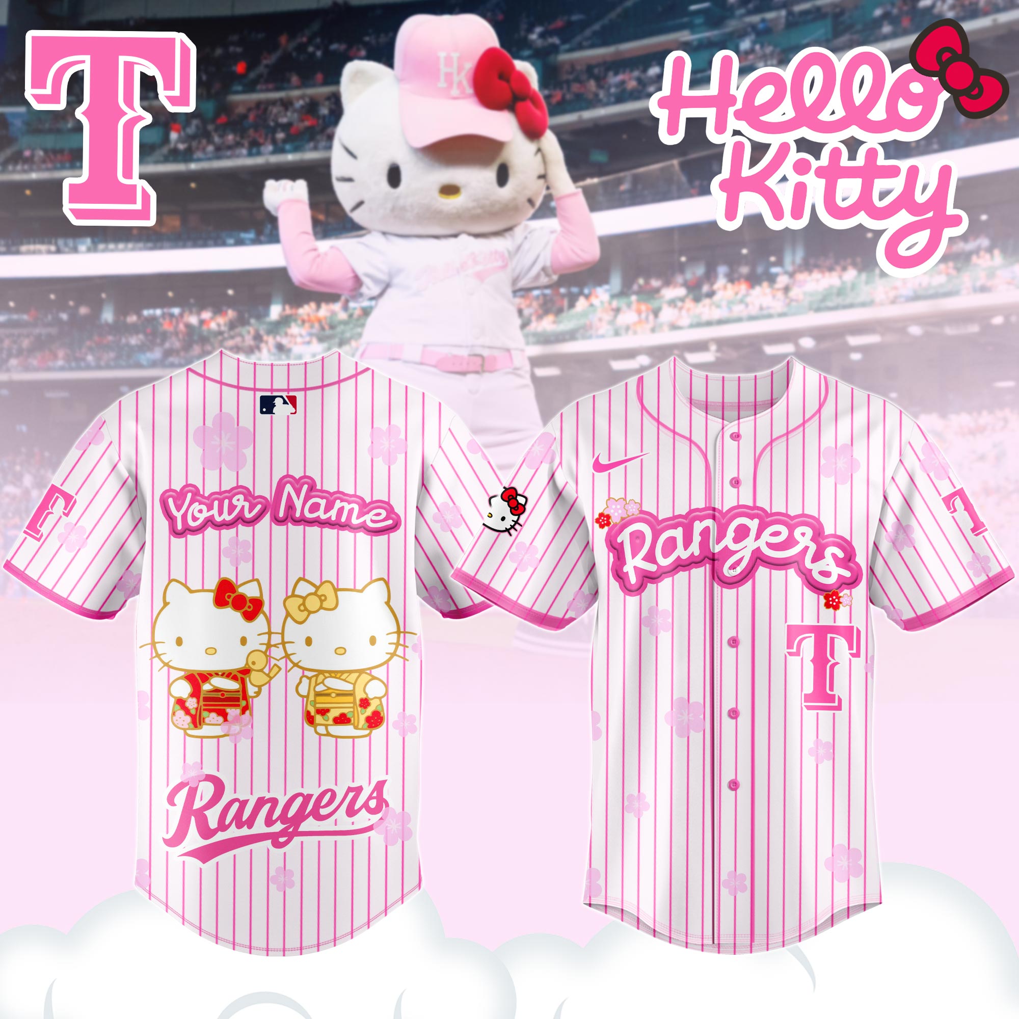 Why You Should Buy Texas Rangers Hello Kitty Happy Girls Day Baseball Jersey and Hoodie Custom Name at Shicloth