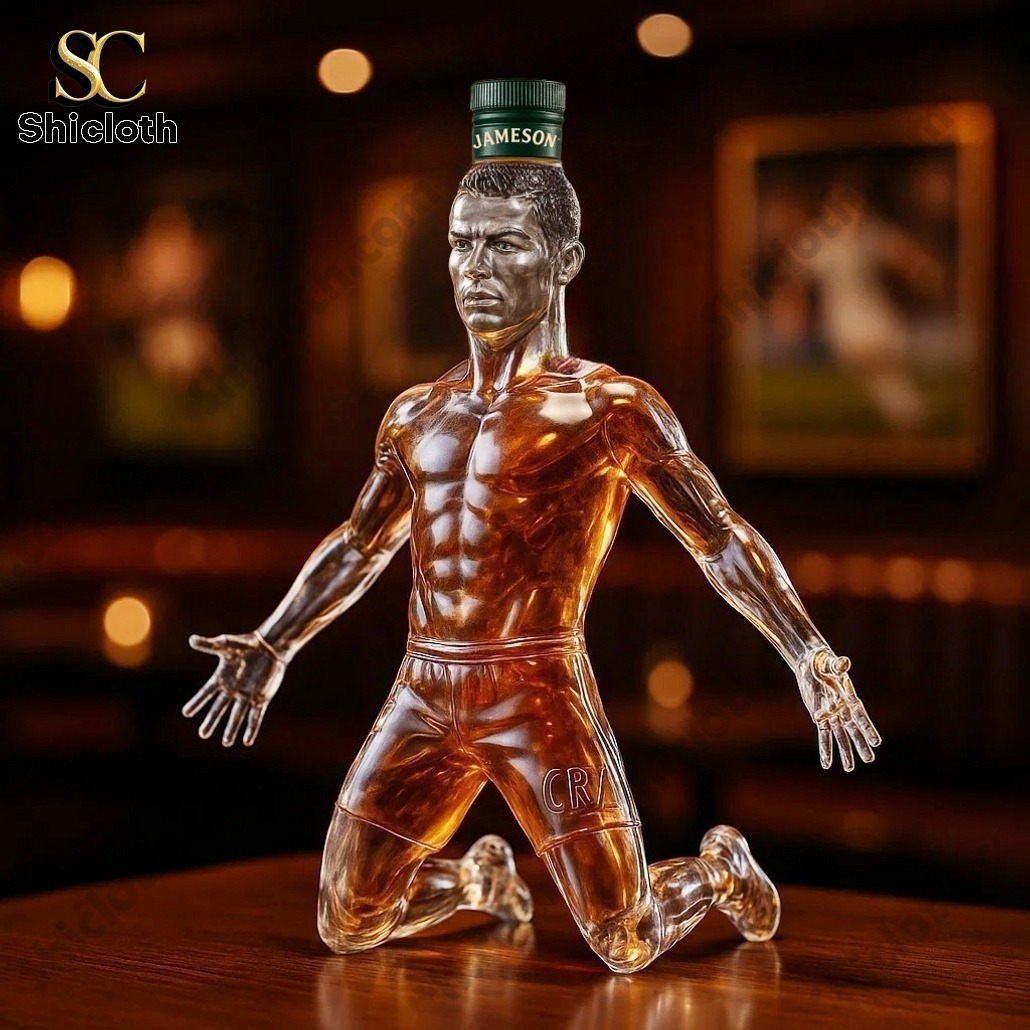 The Goat Cristiano Ronaldo Bottle is the ultimate conversation starter for football fans and whiskey enthusiasts alike. This stunning collector’s item features a high-quality glass decanter sculpted into the iconic “Siuuu” celebration pose, capturing the athletic physique and legendary status of CR7 in every curve. Whether you are looking for a centerpiece for your home bar or a unique gift for a die-hard supporter, this versatile bottle combines sports history with premium barware aesthetics.