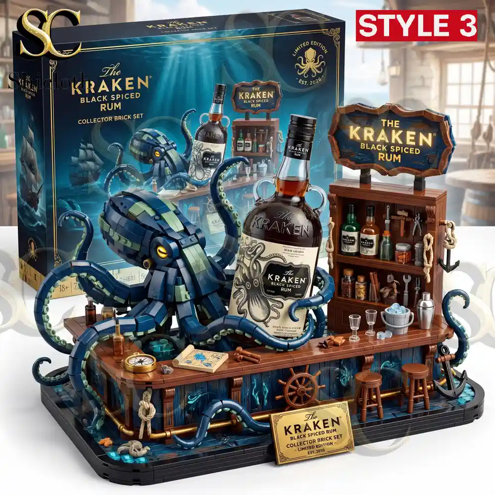 If you are searching for a unique collector’s piece that combines the dark mystery of the ocean with the precision of building blocks, the Kraken Black Spiced Rum Building Set is your ultimate choice. This set isn’t just a toy; it is a sophisticated display piece that brings the legendary sea monster to life, wrapping its powerful tentacles around the iconic rum bottle. Whether you prefer the sleek, monochromatic look of Style 1 or the vibrant, immersive bar scene of Style 3, there is a design to match every collector’s aesthetic.