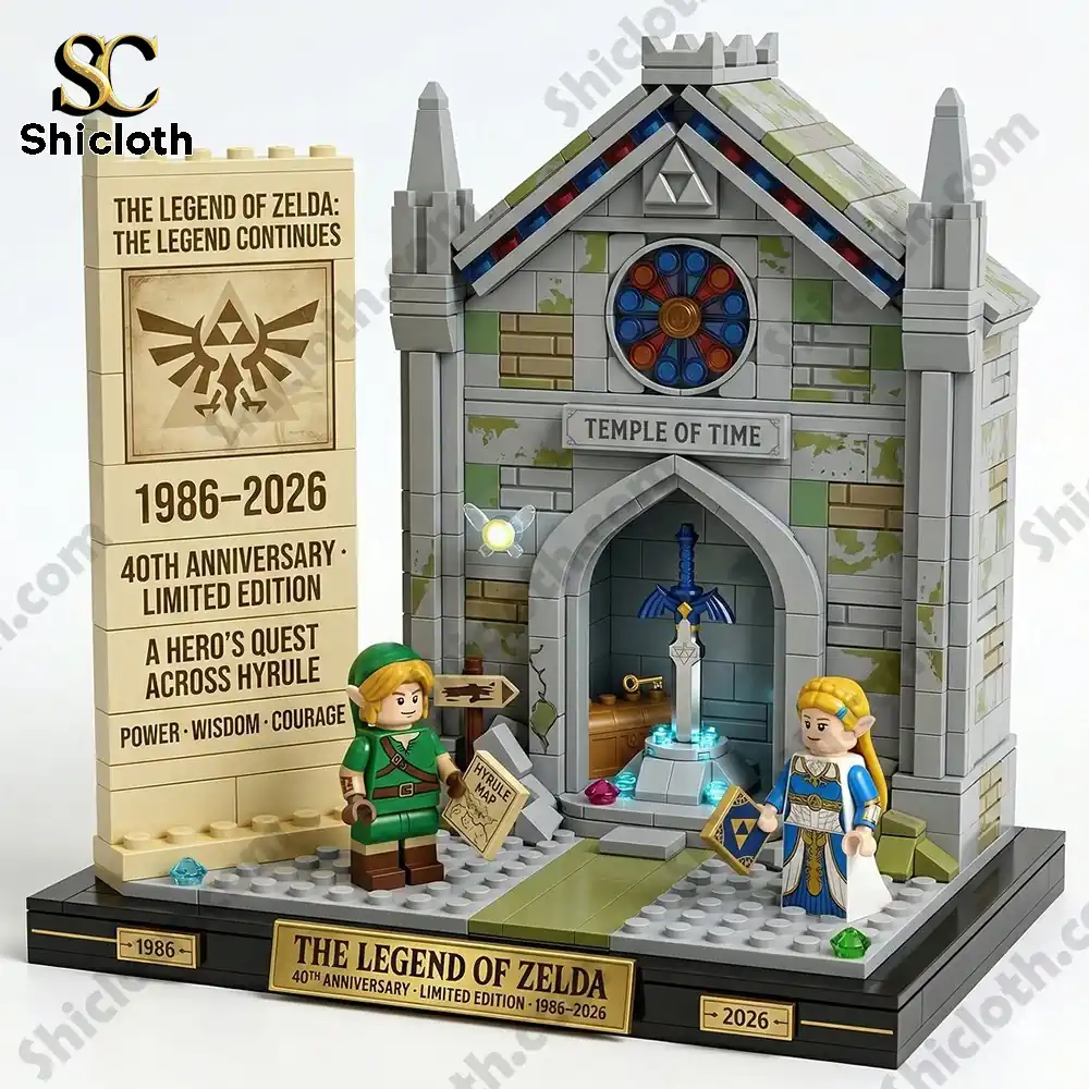 The Legend of Zelda has captured the hearts of gamers for four decades, and this 40th Anniversary Temple of Time building block set is the ultimate tribute. This commemorative display piece beautifully captures the essence of Hyrule, featuring a highly detailed stone-grey cathedral structure complete with a stained-glass window motif and the iconic Master Sword resting on its pedestal. Whether you are a long-time fan or a collector of unique brick sets, this model serves as a stunning centerpiece that honors the legacy of Link and Zelda from 1986 to 2026.