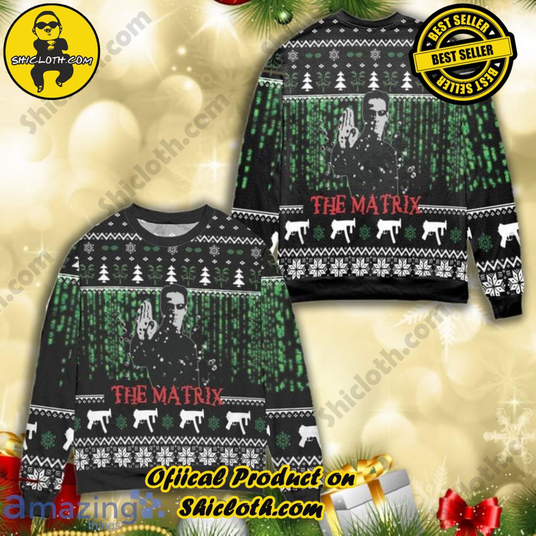 The Matrix Snowflake Pine Tree Christmas Pattern Full Print Ugly Sweater