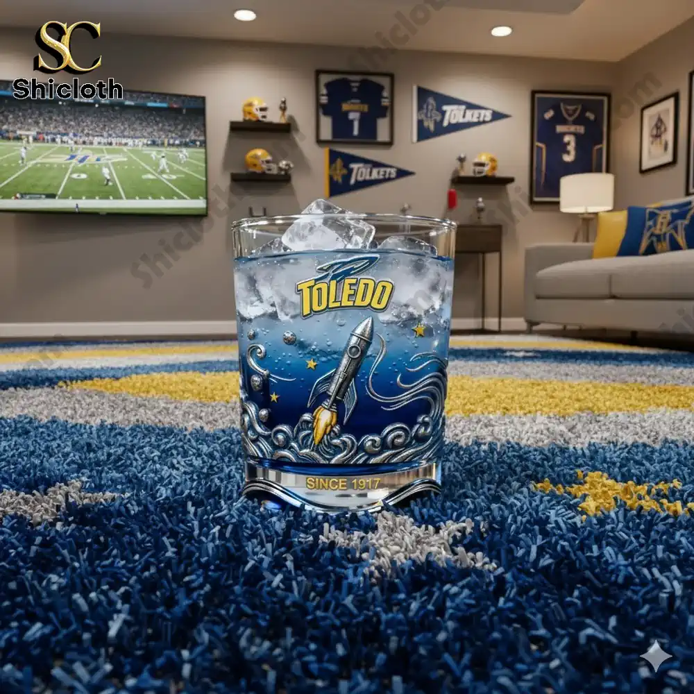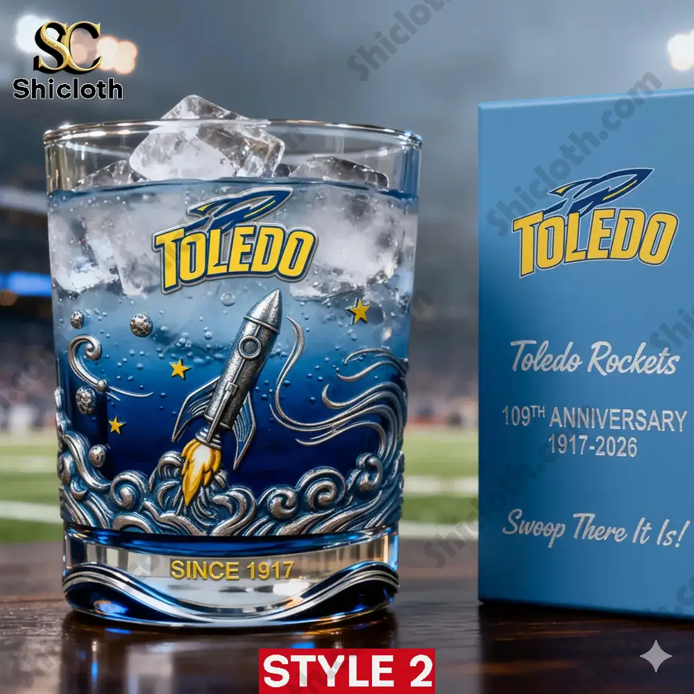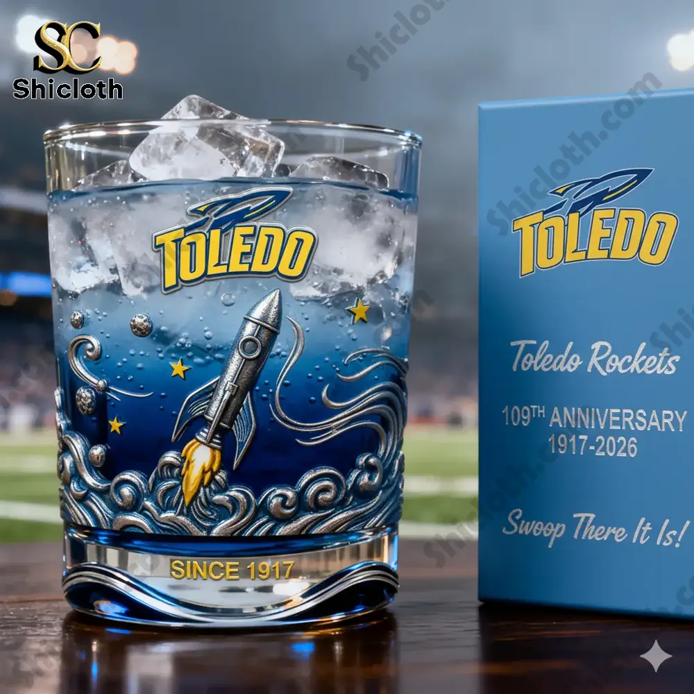 Celebrate over a century of tradition with the Toledo Rockets 109th Anniversary Whiskey Glass. This commemorative glassware honors the legendary “Rockets” legacy from 1917 to 2026, featuring a stunning deep blue gradient and intricate 3D-textured rocket designs. Whether you are a student, alumnus, or a die-hard football fan, this glass serves as a functional piece of history that brings the stadium atmosphere right into your home.