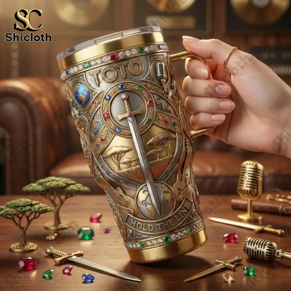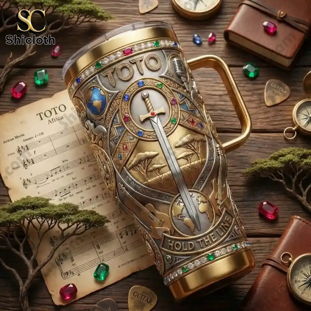The TOTO Hold The Line 40oz Tumbler is a stunning tribute to soft rock royalty, blending high-end functionality with a design inspired by the band’s iconic “Africa” and “Hold the Line” legacy. This tumbler is more than just a drinkware item; it is a meticulously crafted piece of fan art featuring a rugged, metallic gold and silver finish that feels as premium as it looks.