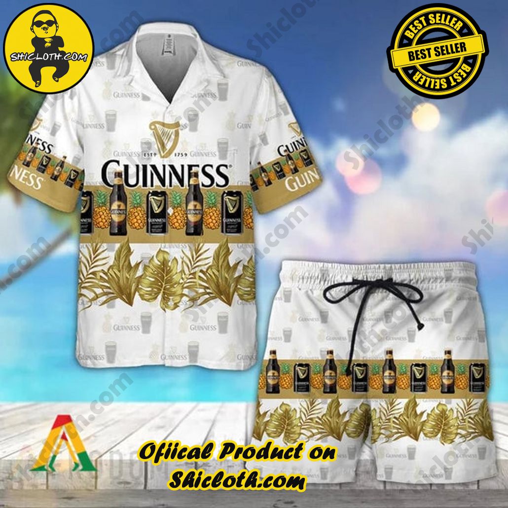 Tropical Pineapple Guinness Beer Hawaiian Beach Shirts For Men
