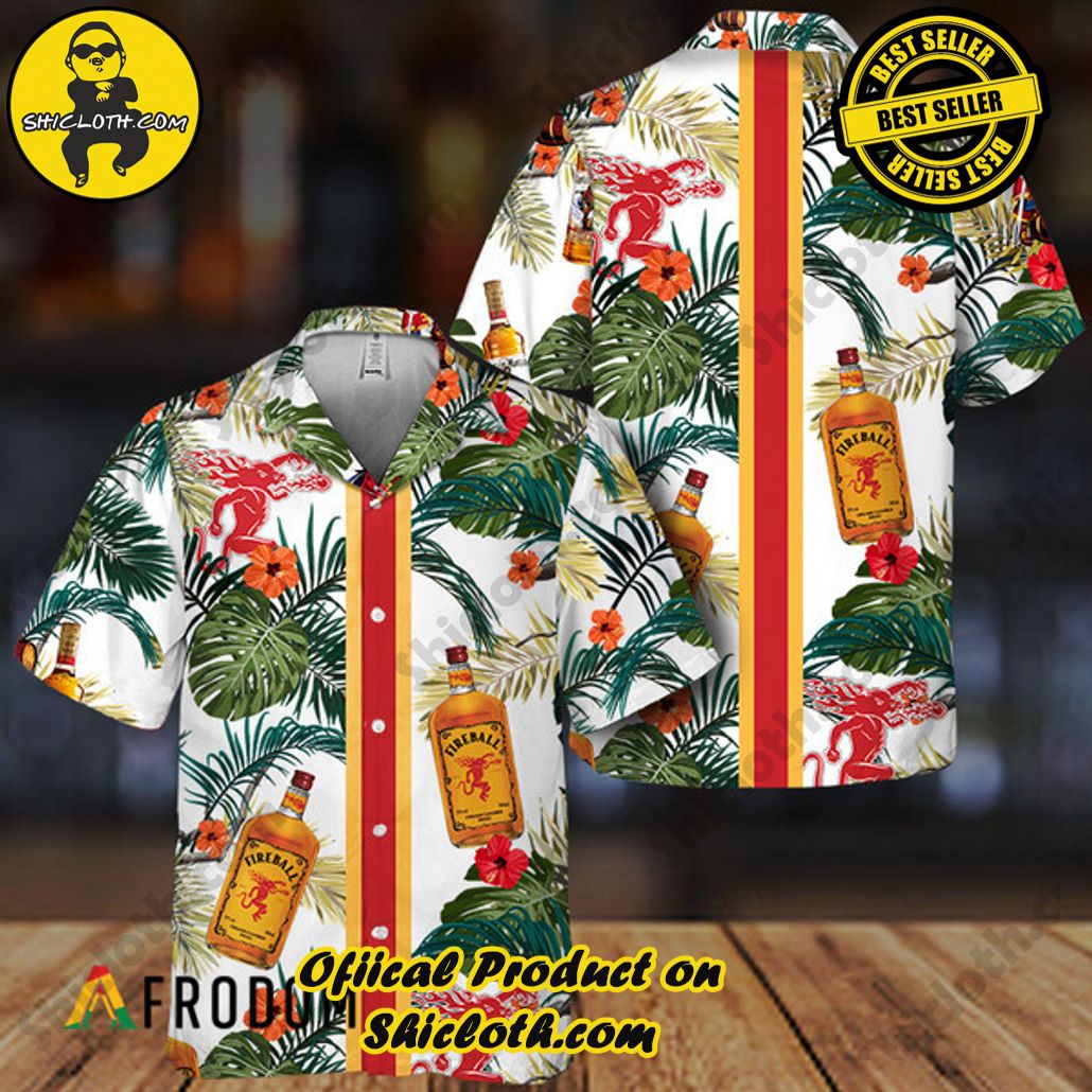 Tropical Summer Flowers Fireball Whisky Hawaiian Shirt