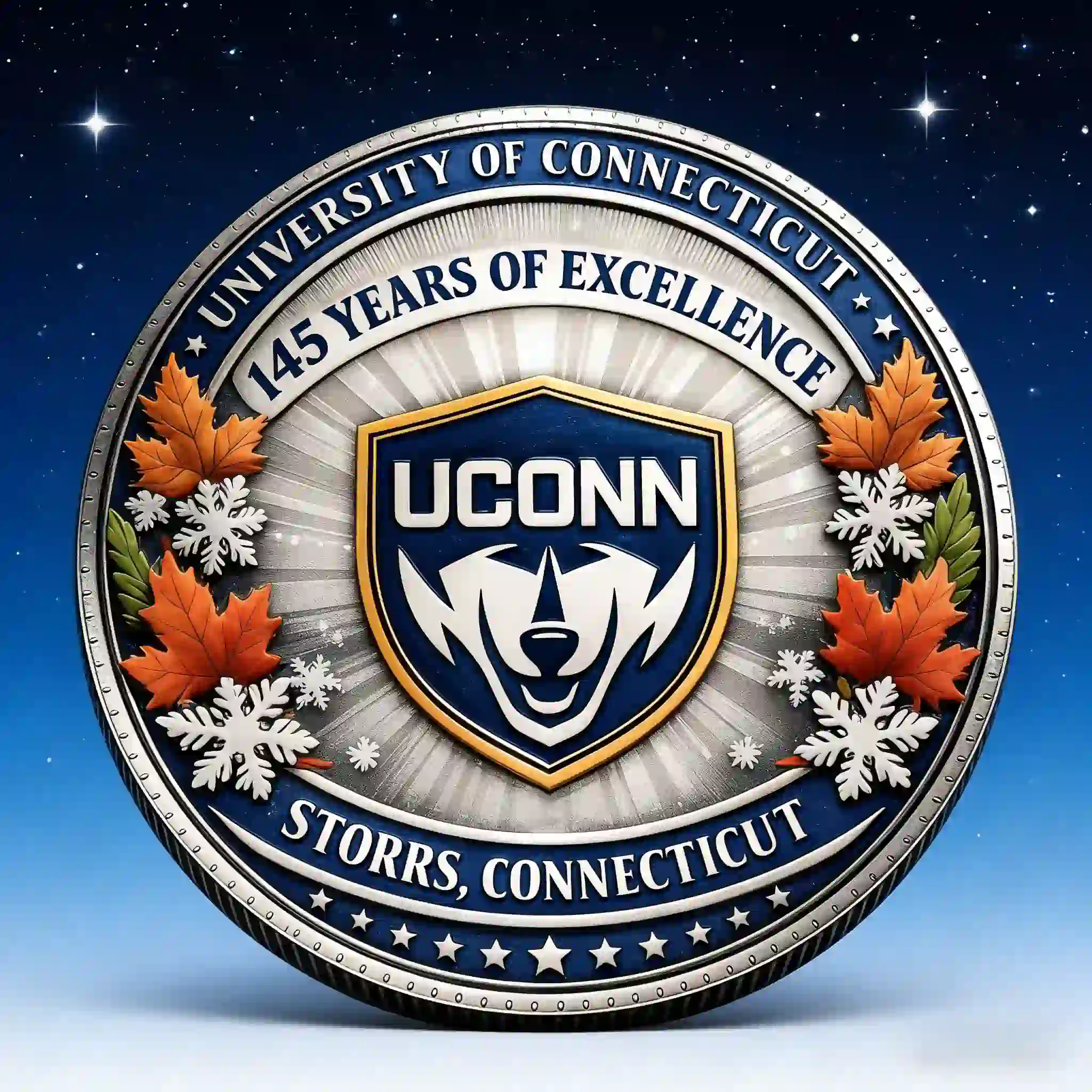 Authentic Design of the UConn Huskies 145th Anniversary Coin