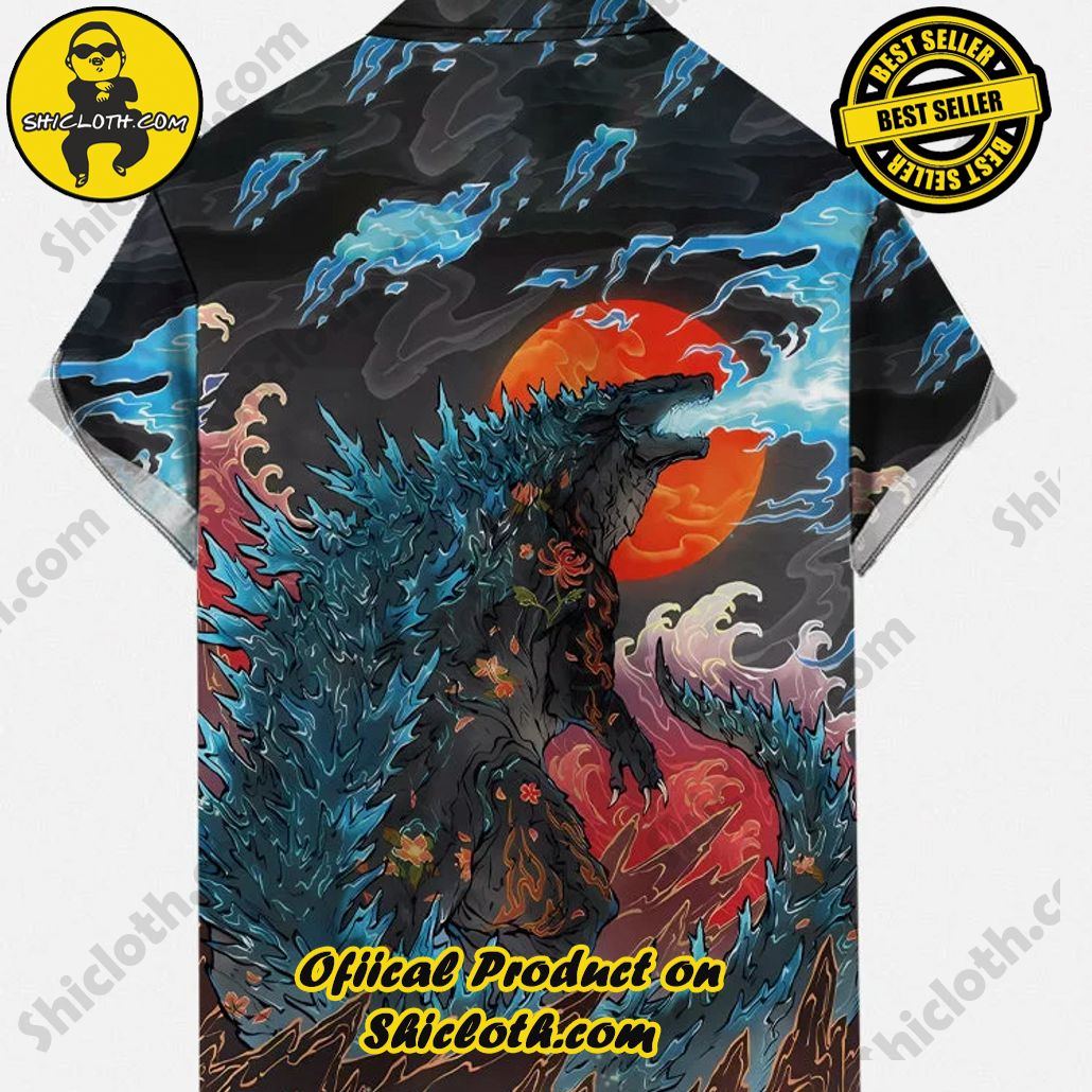 - Suitable for special occasions such as Christmas, birthday, celebration, housewarming gift. Ukiyo-E Retro Nostalgic Blue Flame Godzilla And Red Sun Printing Short Sleeve Shirt