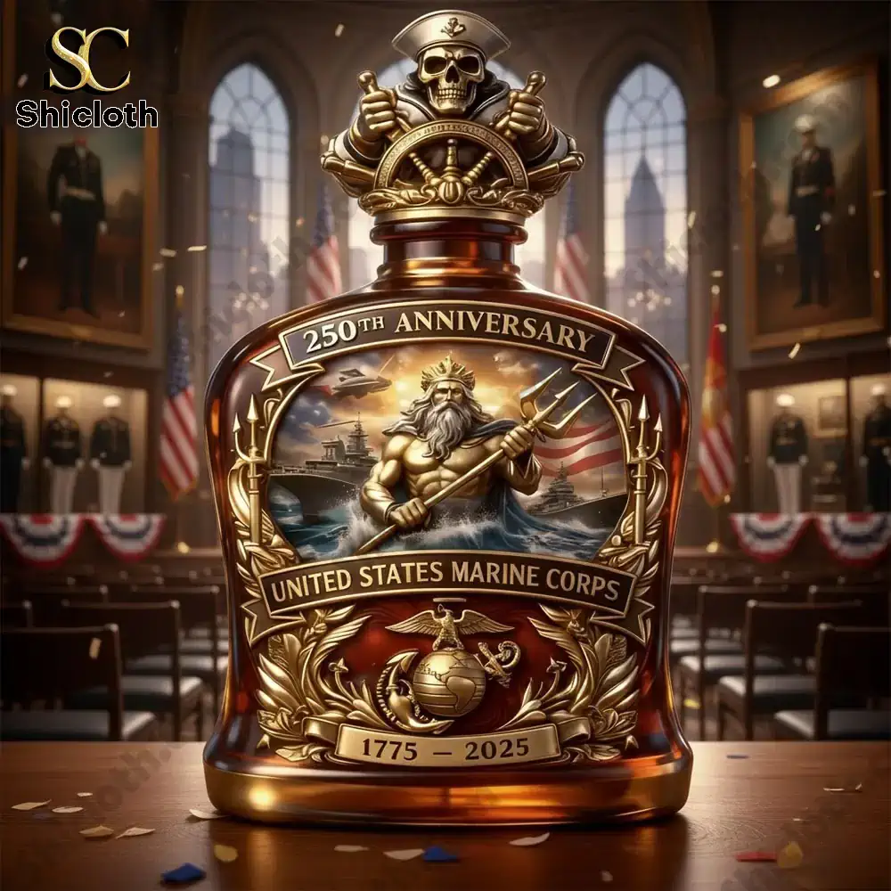 The United States Marine Corps 250th Anniversary Commemorative Whiskey Bottle Decanter is a stunning tribute to two and a half centuries of honor and courage. This limited edition piece serves as both a functional container and a high-end display item, featuring a rich amber glow through its premium glass construction. Whether you are a veteran, an active-duty member, or a collector of military memorabilia, this decanter captures the spirit of the Corps with intricate 3D-style details that make it a standout centerpiece for any home bar or office.