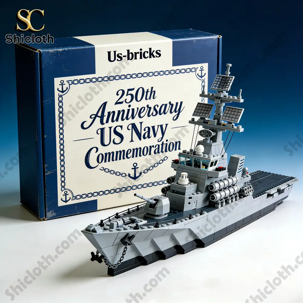 To celebrate the rich history of the American fleet, the US Navy 250th Anniversary Warship Kit by Us-bricks offers a sophisticated building experience for collectors and history enthusiasts alike. This commemorative set features a sleek, multi-toned grey color scheme with a dark navy waterline, perfectly capturing the imposing look of a modern destroyer. From the precision-molded rotating main gun on the bow to the intricate radar arrays and solar panels atop the mast, every brick is designed to replicate the complex machinery of a naval vessel. This limited-edition kit is more than just a toy; it is a high-quality display piece that fits beautifully on a study shelf alongside medals and books.