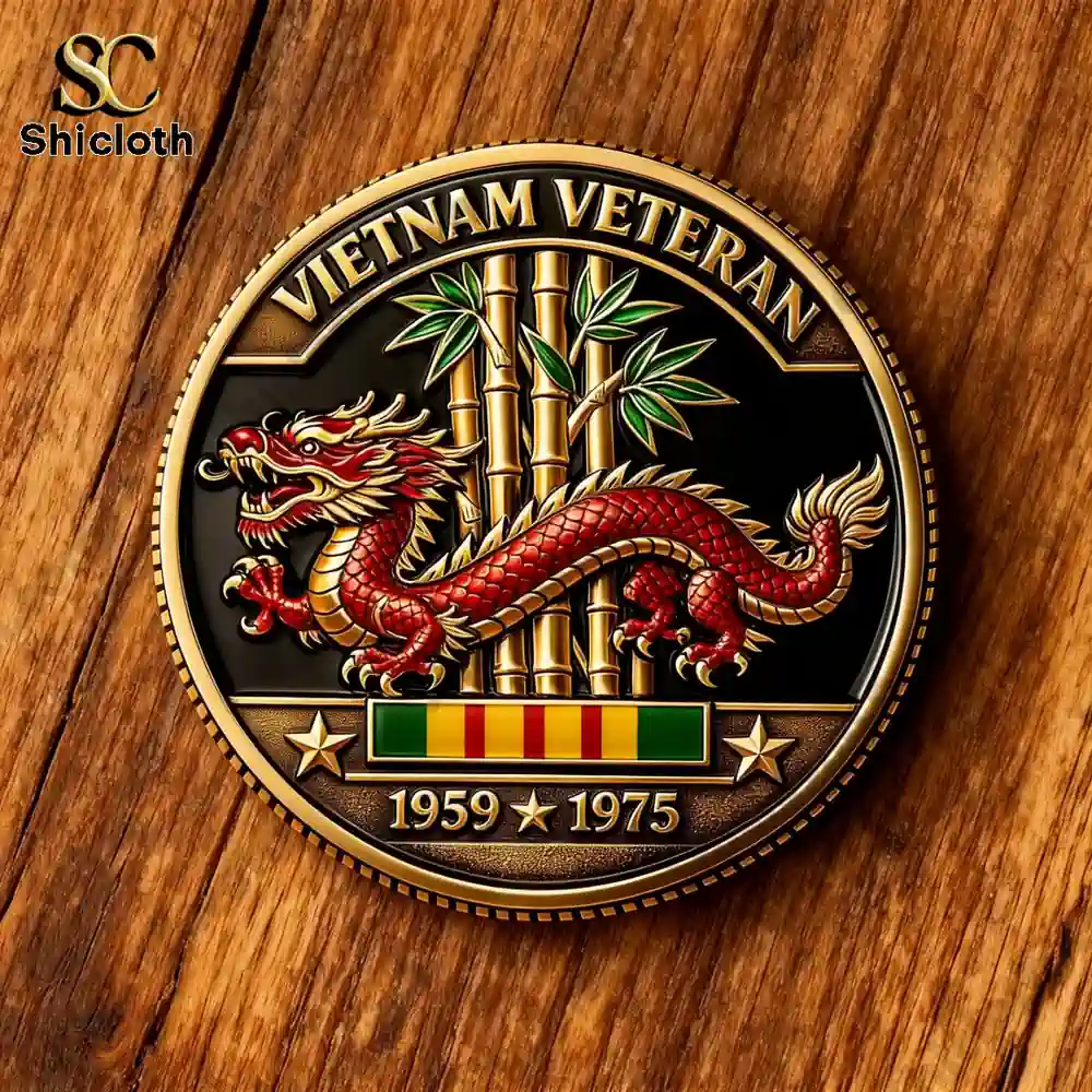 The Veteran Service Vietnam 1959-1975 Coin is a meaningful commemorative piece designed for those who served or wish to honor the legacy of the Vietnam War era. Featuring intricate 3D embossed details and vibrant enamel colors, this challenge coin serves as a durable symbol of courage and sacrifice. Whether you are a collector or looking for a heartfelt gift for a loved one, this coin captures the essence of military service through high-quality craftsmanship and symbolic artistry.