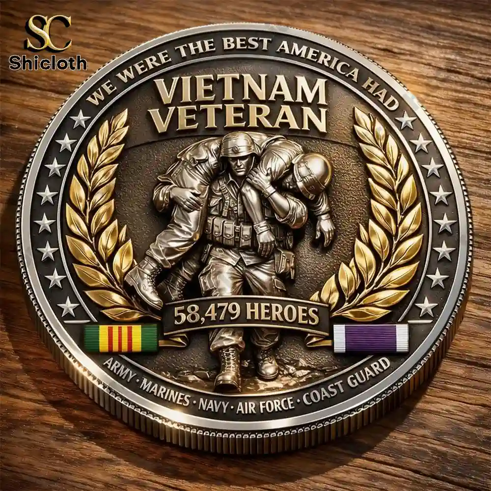 This masterfully struck Vietnam War Veterans We Were The Best America Had Commemorative Coin serves as a profound symbol of sacrifice and brotherhood. On the obverse, a detailed relief depicts three soldiers standing unified against the backdrop of the American flag, framed by a border of stars and the poignant inscription: “Brothers Who Fought Without America’s Support, Brothers Who Returned Without America’s Welcome.” The reverse side honors the 58,479 heroes lost in the conflict, featuring a powerful image of a soldier carrying a fallen comrade, flanked by laurel wreaths and the Vietnam Service and Purple Heart ribbon bars. Every element, from the textured finish of the soldiers’ uniforms to the precision-milled serrated edge, reflects a commitment to historical accuracy and artistic excellence.