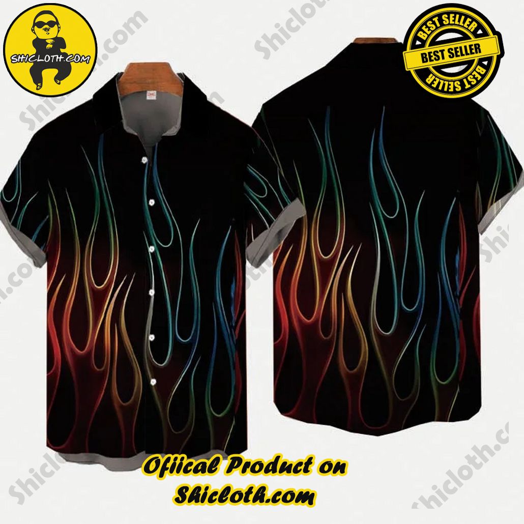 - Suitable for special occasions such as Christmas, birthday, celebration, housewarming gift. Vintage Fashion Flame Art Gradient Flames-Fire Hawaiian Printing Short Sleeve Shirt