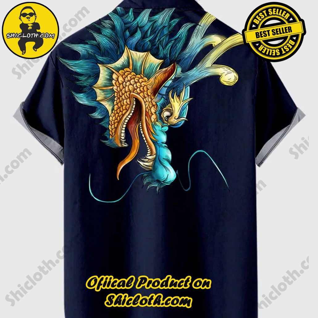 Vintage Green and Red Stripe Dragon Head Up Printing Men’s Short Sleeve Shirt