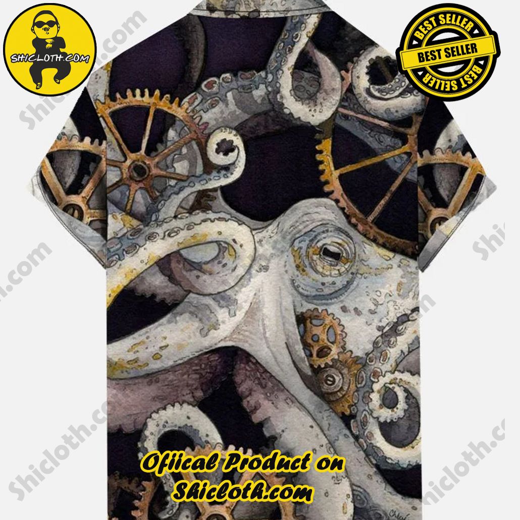 Vintage Octopus Sepia Tech Gear Parts Printing Hawaiian Short Sleeve Shirt