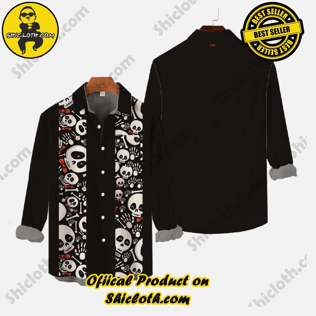 Product Information : Vintage Style Black And Halloween Horror Stacked Skulls Printing Long Sleeve Shirt