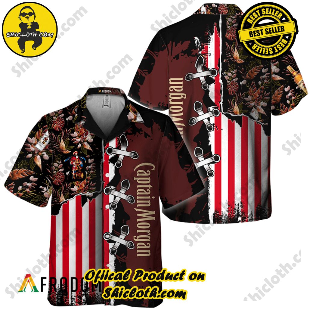 Vintage Tropical Flower Captain Morgan Hawaiian Shirt
