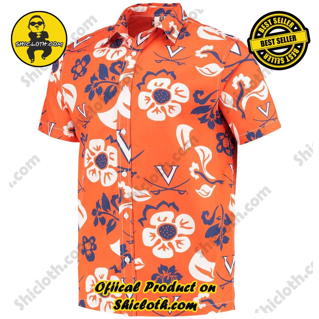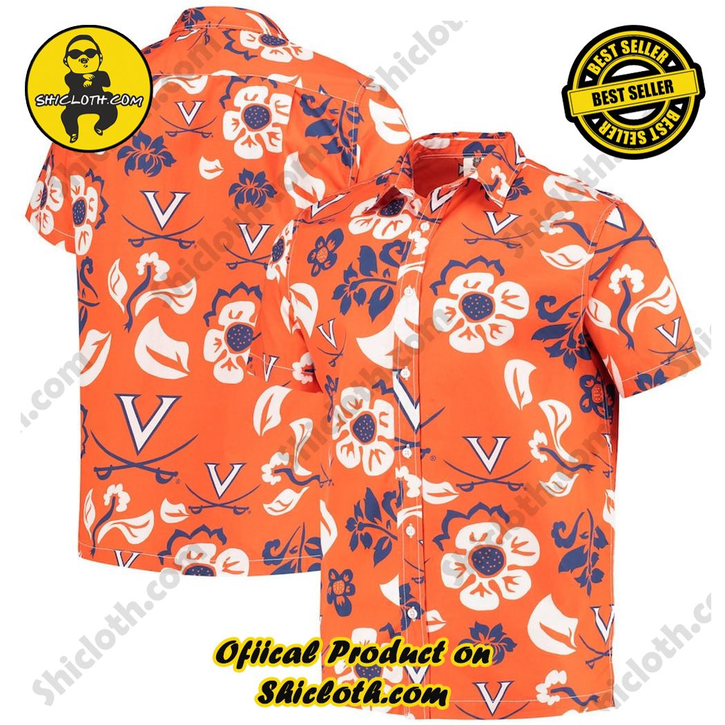 Virginia Cavaliers Orange Floral Button-Up Hawaiian Shirt