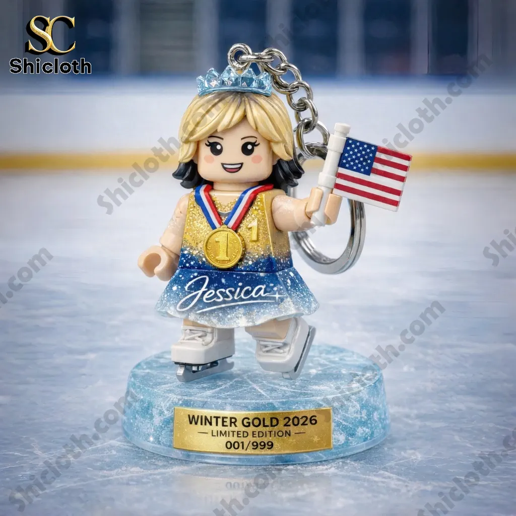 The Winter Gold 2026 Champion Skater Collector Keychain is a premium, limited-edition memento celebrating athletic excellence. This 3D-styled figure features a blonde skater in a sparkling gold and blue ombre dress, complete with a gold medal and a miniature flag. It is a perfect choice for those seeking a durable, high-quality accessory that combines sports fandom with a sleek, modern aesthetic.