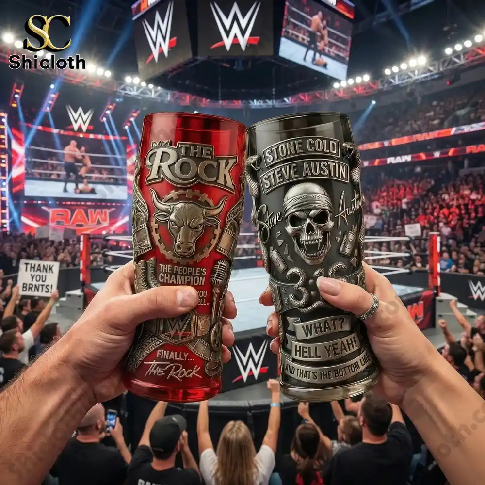 Each collector glass is crafted from heavy-duty, high-transparency glass and encased in a detailed metallic-finish wrap that creates a striking tactile experience. For instance, the Hulk Hogan edition boasts a deep amber glow with a 3D motorcycle and skull emblem flanked by vibrant orange flames, while the John Cena version features a vibrant emerald green tint with his signature “Hustle, Loyalty, Respect” mantra and a raised “You Can’t See Me” hand gesture. These glasses aren’t just printed; they feature intricate textures like miniature championship belts, textured chains, and legendary catchphrases etched into the base. Whether it is the metallic silver snakes on the Stone Cold glass or the brahma bull relief on The Rock’s red-tinted vessel, every detail is positioned to provide a balanced, ergonomic grip.