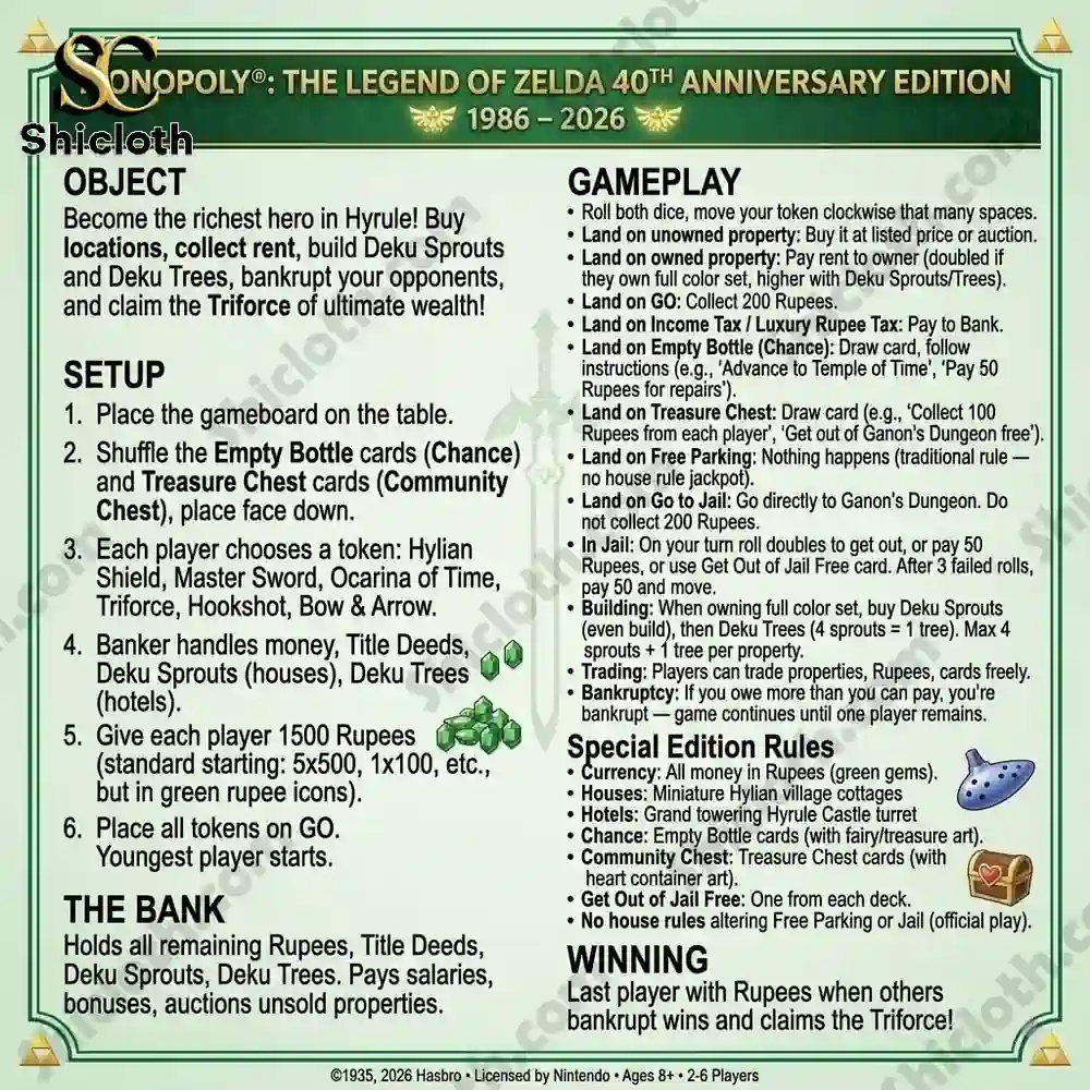 Zelda 40th Anniversary Monopoly Board Game