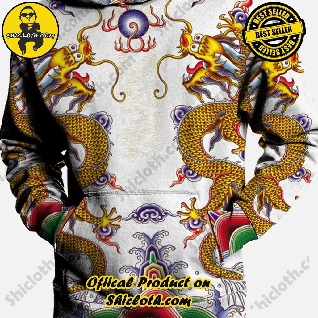 Mysterious Oriental Vintage Golden Dragons And Pearls Printing Hooded Sweatshirt