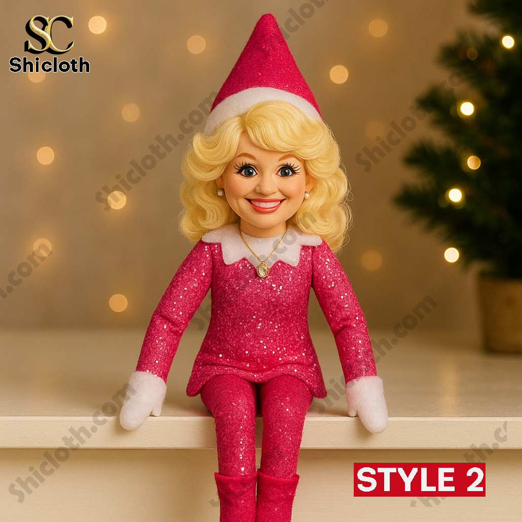 Dolly Parton On A Stoop Christmas Elf Doll