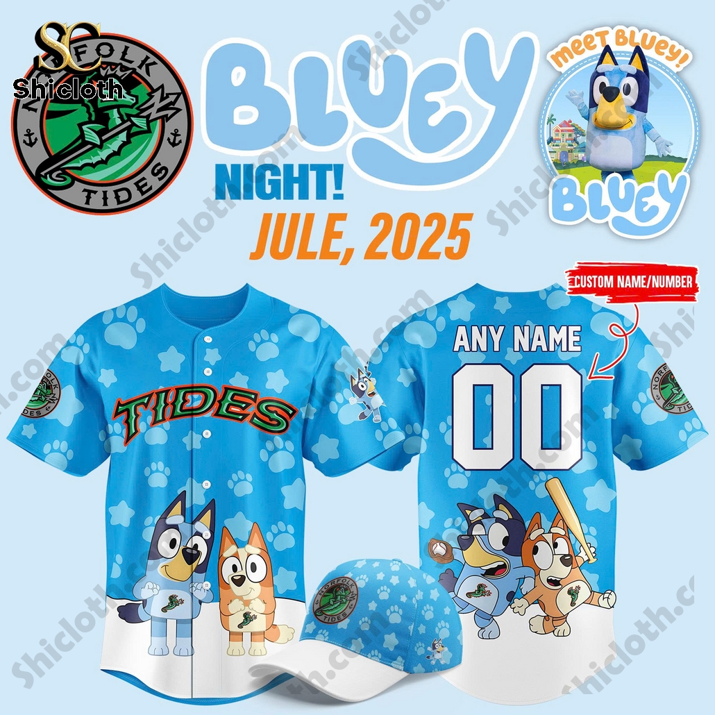 Norfolk Tides Bluey and Bingo Baseball Jersey, Shirt