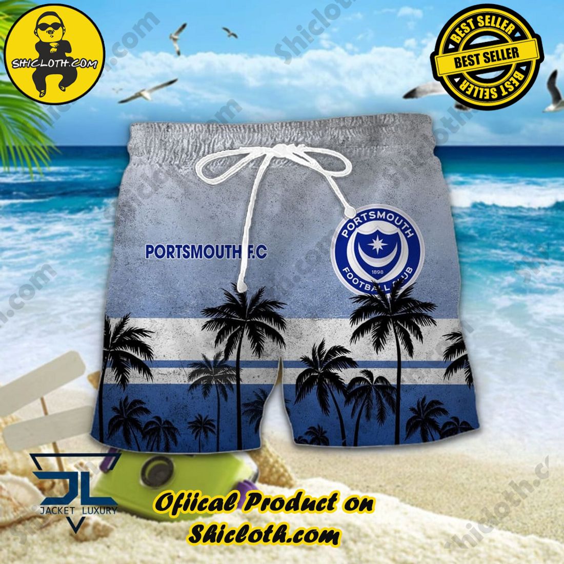 Portsmouth FC EFL Palm Tree Aloha Hawaiian Shirt